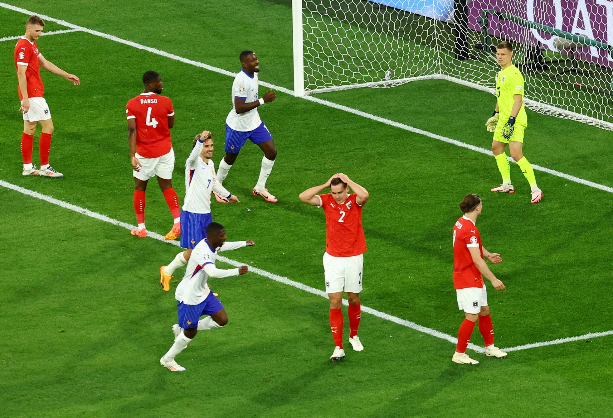 Austria's Maximilian Wober looks dejected after he scores an own goal in their Euro match against France, in Dusseldorf, Germany on June 17, 2024. (Photo by Bernadett Szabo/Reuters)