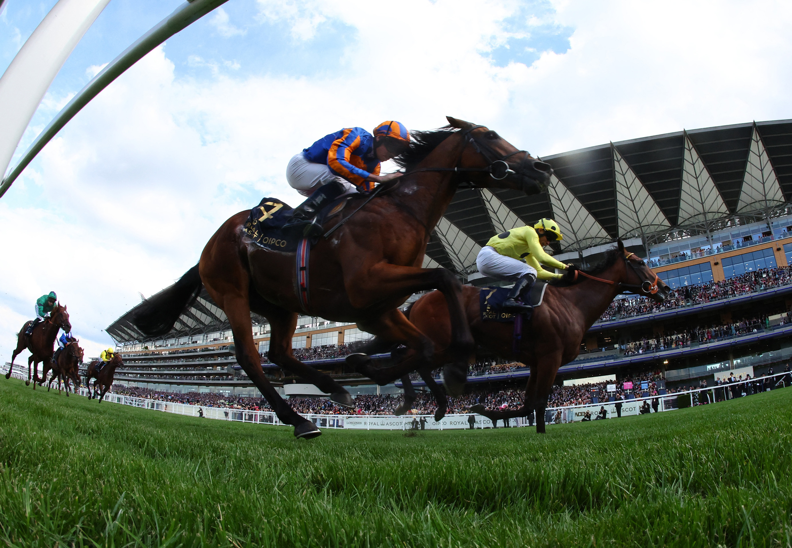 Almaqam ridden by Tom Marquand in action on their way to winning the 16:25 St James's Palace Stakes alongside Henry Longfellow ridden by Ryan Moore, June 18, 2024. (Photo by Andrew Boyers/Action Images via Reuters)
