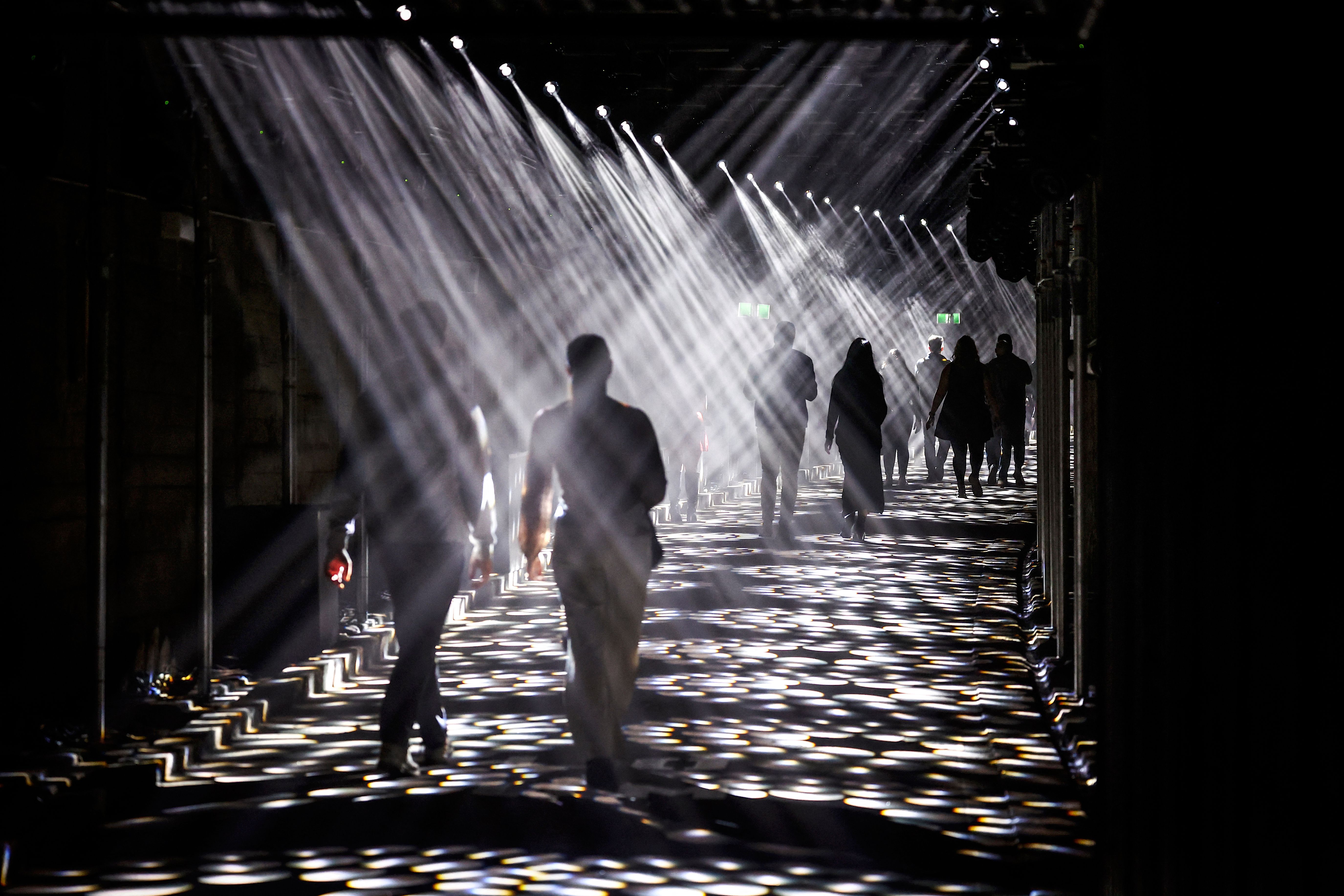 People view an installation of projections and lights called “Dark Spectrum” located at old tram tunnels as part of the annual Vivid Sydney festival in Sydney on May 24, 2024. (Photo by David Gray/AFP Photo)