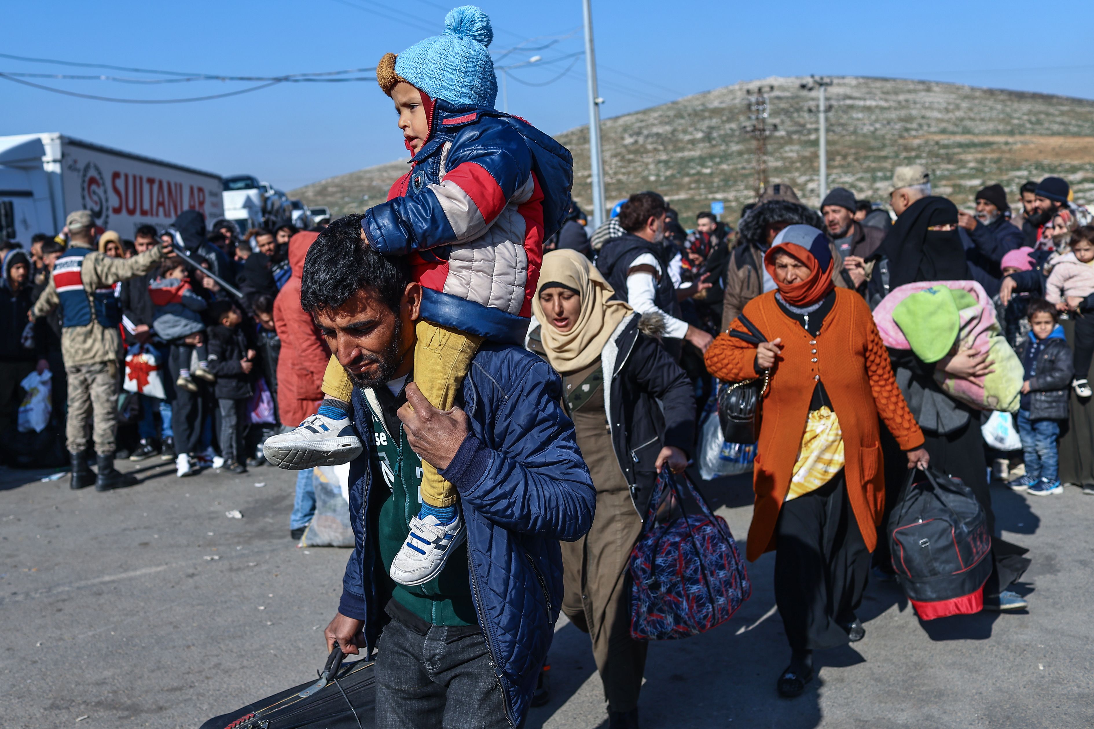 Syrian people, who are living in Hatay city, try to cross the Turkish-Syrian border at Cilvegozu border gate after they were affected by the powerful earthquake, at Reyhanli district in Hatay, Turkey, 16 February 2023. More than 41,000 people have died and thousands more are injured after two major earthquakes struck southern Turkey and northern Syria on 06 February. Authorities fear the death toll will keep climbing as rescuers look for survivors across the region. (Photo by Sedat Suna/EPA/EFE/Rex Features/Shutterstock)