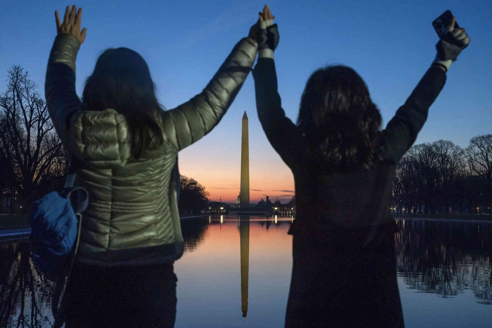 Worshipers pray on the steps of the Lincoln Memorial during a sunrise Easter service in Washington, Sunday, March 31, 2024. (Photo by /Nathan Howard/AP Phot)