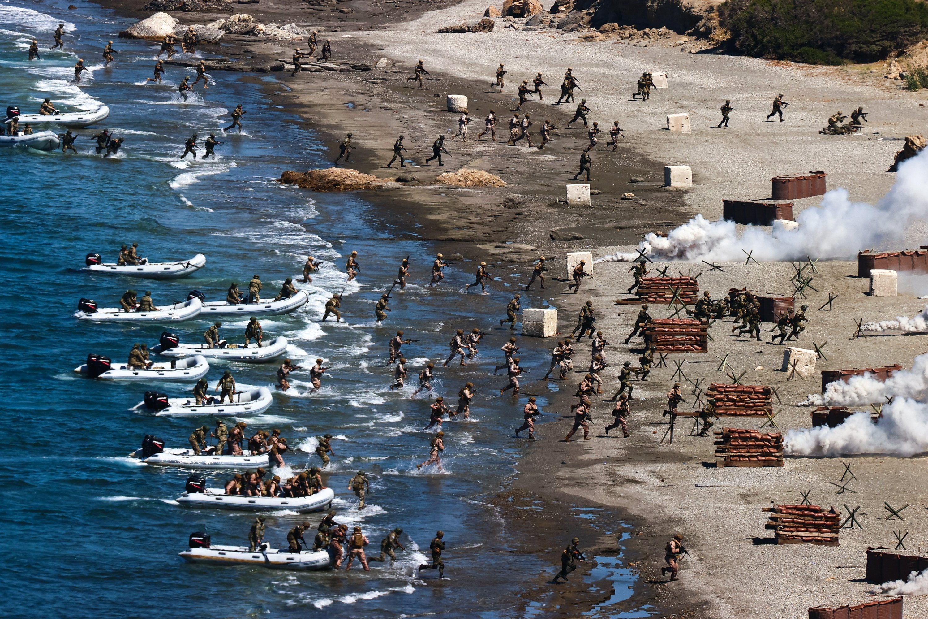Elite observer day of Exercise Efes-2024 begins on May 30, 2024 in Izmir, Turkey. The elite observer day of Exercise Ephesus-2024, one of the largest combined, joint exercises of the Turkish Armed Forces, has begun. The elite observer day, which was also watched by President Recep Tayyip Erdoğan, is being followed by Yaşar Güler, the Minister of National Defense, the defense ministers and chiefs of staff of friendly and allied countries, and the Turkish Armed Forces command. (Photo by Yavuz Ozden/ dia images via Getty Images)
