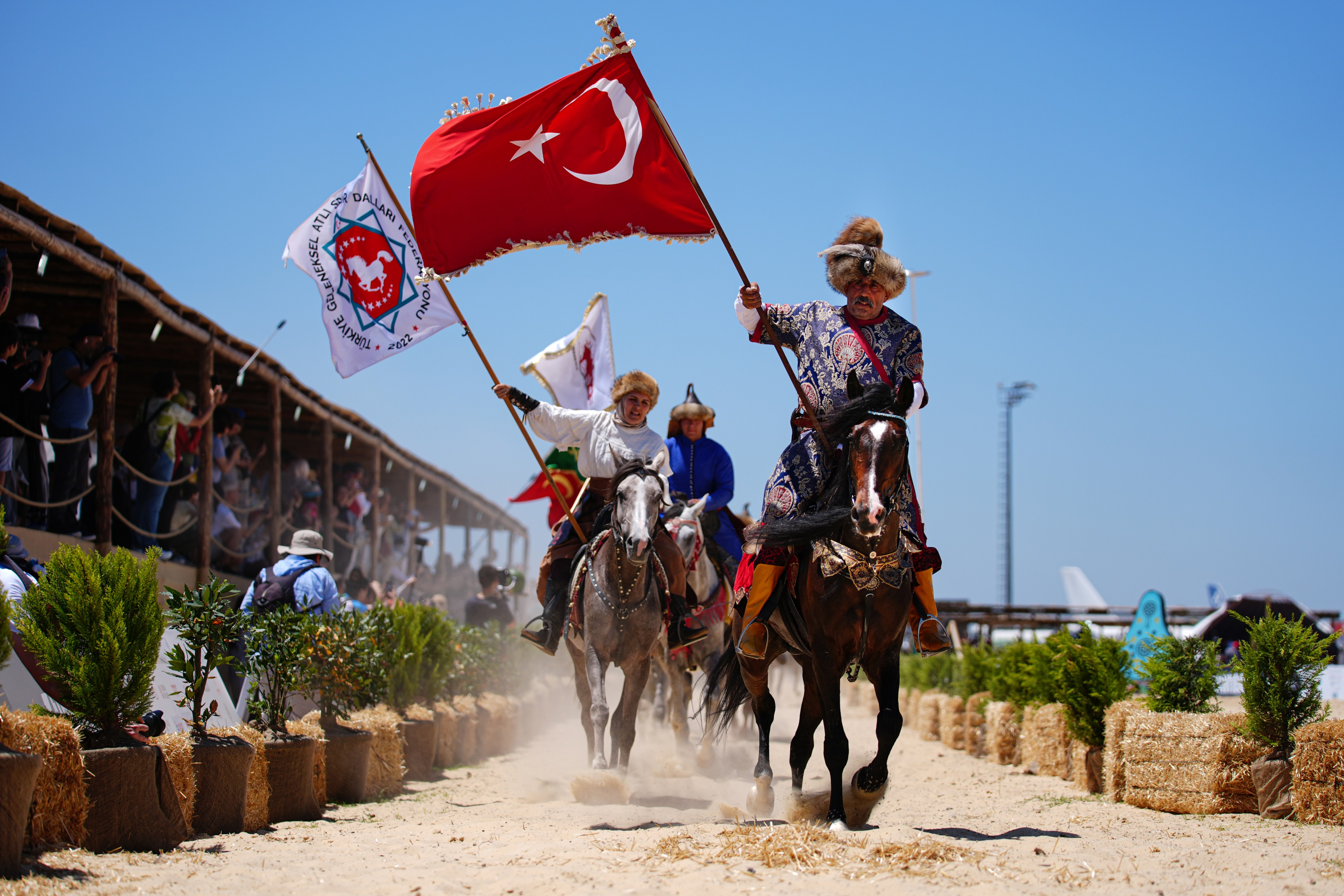 People ride horse during 6th Ethnosport Culture Festival at Ataturk Airport in Istanbul, Turkiye on June 08, 2024. (Photo by Adem Kutucu/Anadolu via Getty Images)