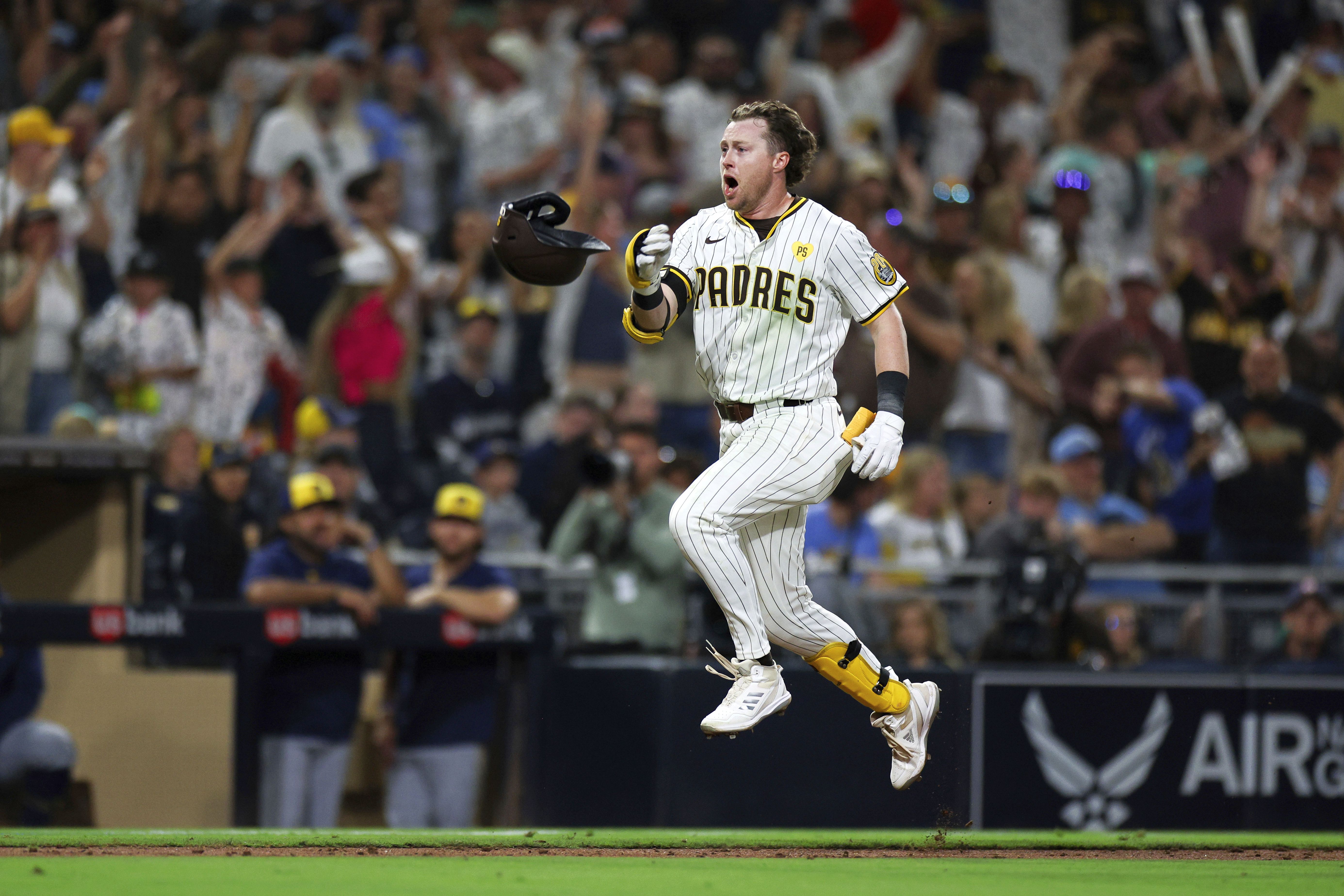 San Diego Padres' Jake Cronenworth celebrates as he nears home after hitting a game-winning solo home run against the Milwaukee Brewers during the ninth inning of a baseball game Thursday, June 20, 2024, in San Diego. (Photo by Derrick Tuskan/AP Photo)