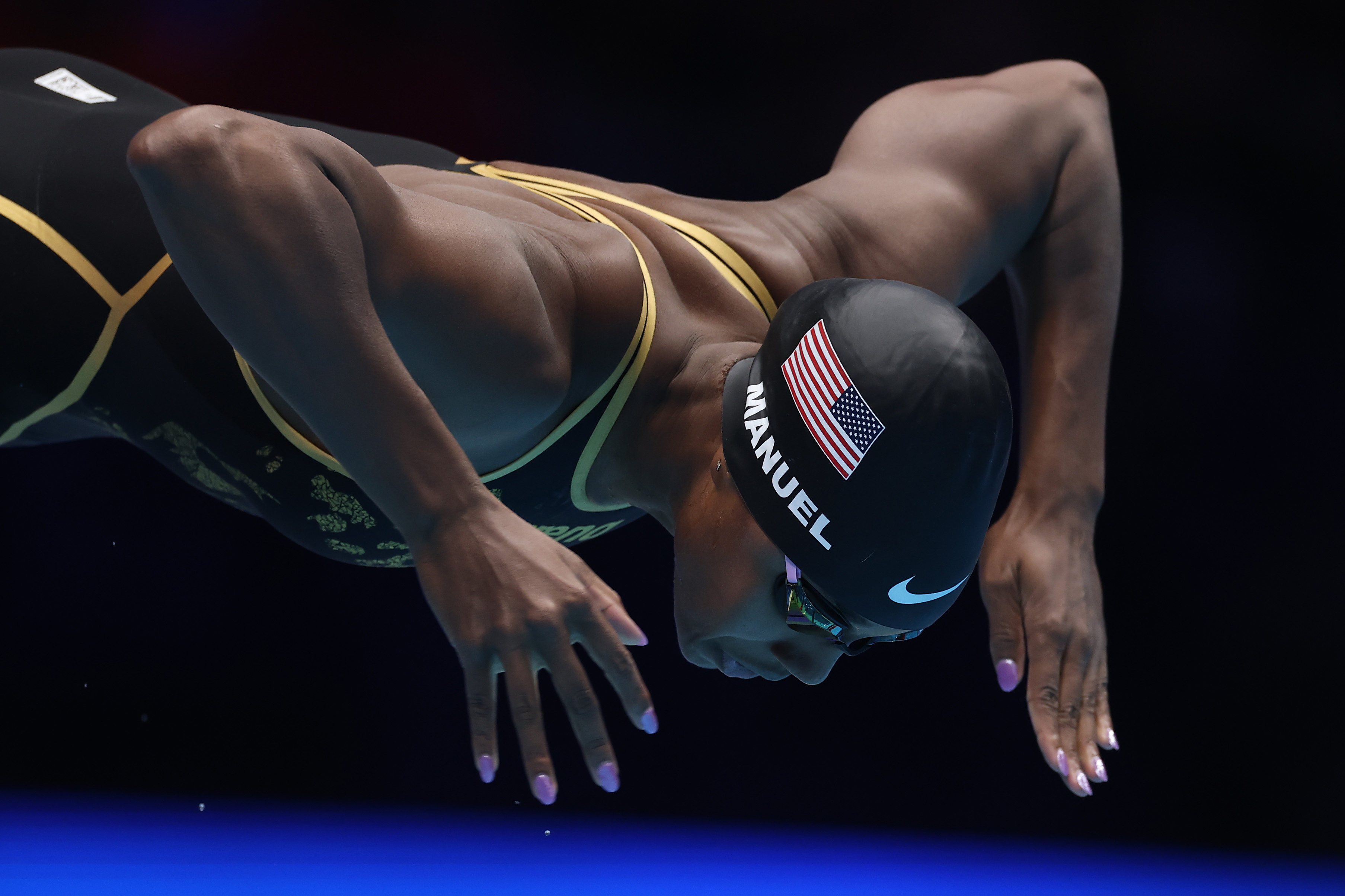 Simone Manuel of the United States competes in the Women's 100m freestyle final on Day Five of the 2024 U.S. Olympic Team Swimming Trials at Lucas Oil Stadium on June 19, 2024 in Indianapolis, Indiana. (Photo by Al Bello/Getty Images)