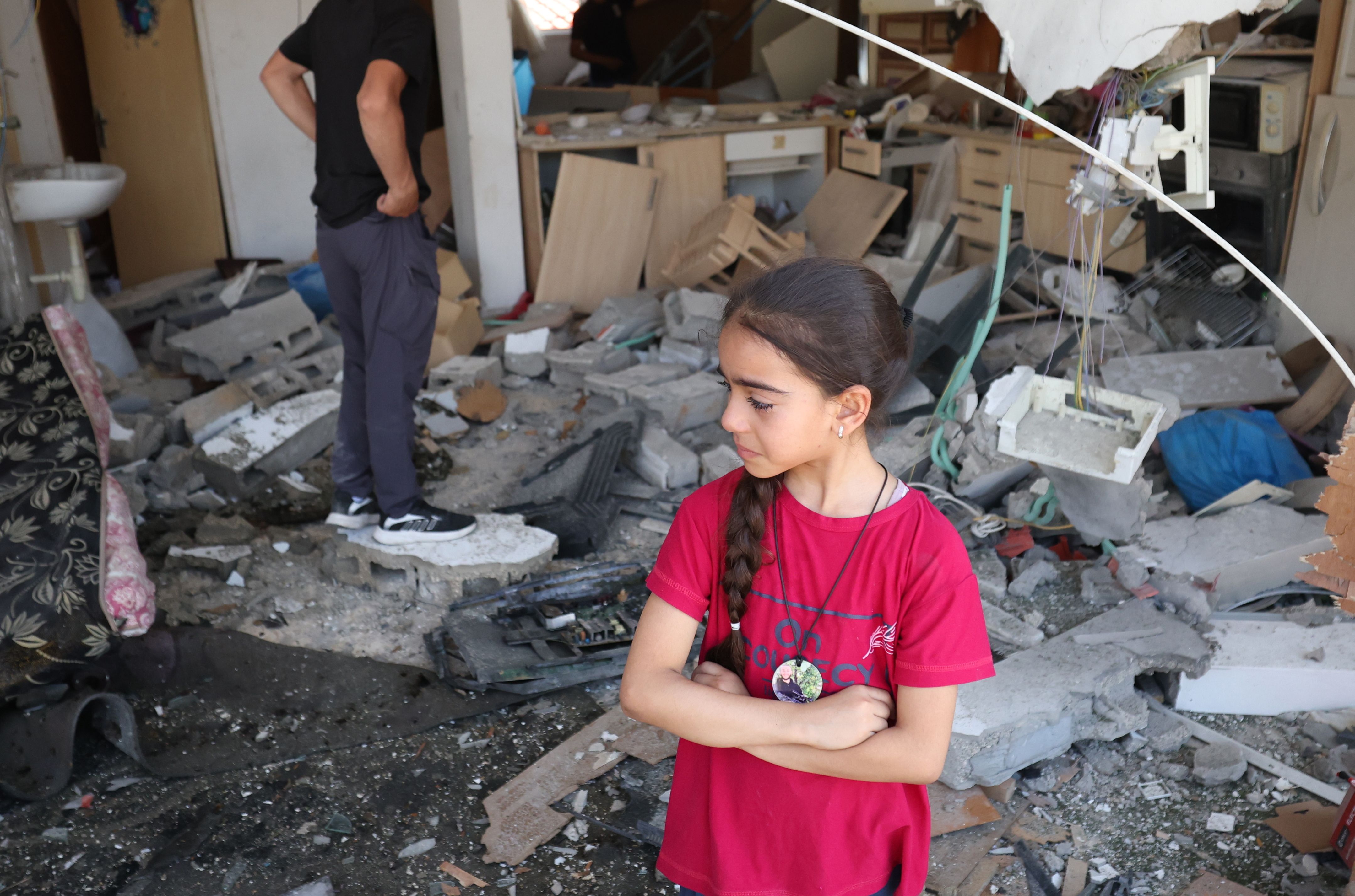 A young Palestinian girl inspects the damage at her house following an Israeli raid in the village of Kafr Dan near the West Bank city of Jenin, 12 June 2024. According to the Palestinian Health Ministry, at least six Palestinians were killed in the operation. (Photo by Alaa Badarneh/EPA)