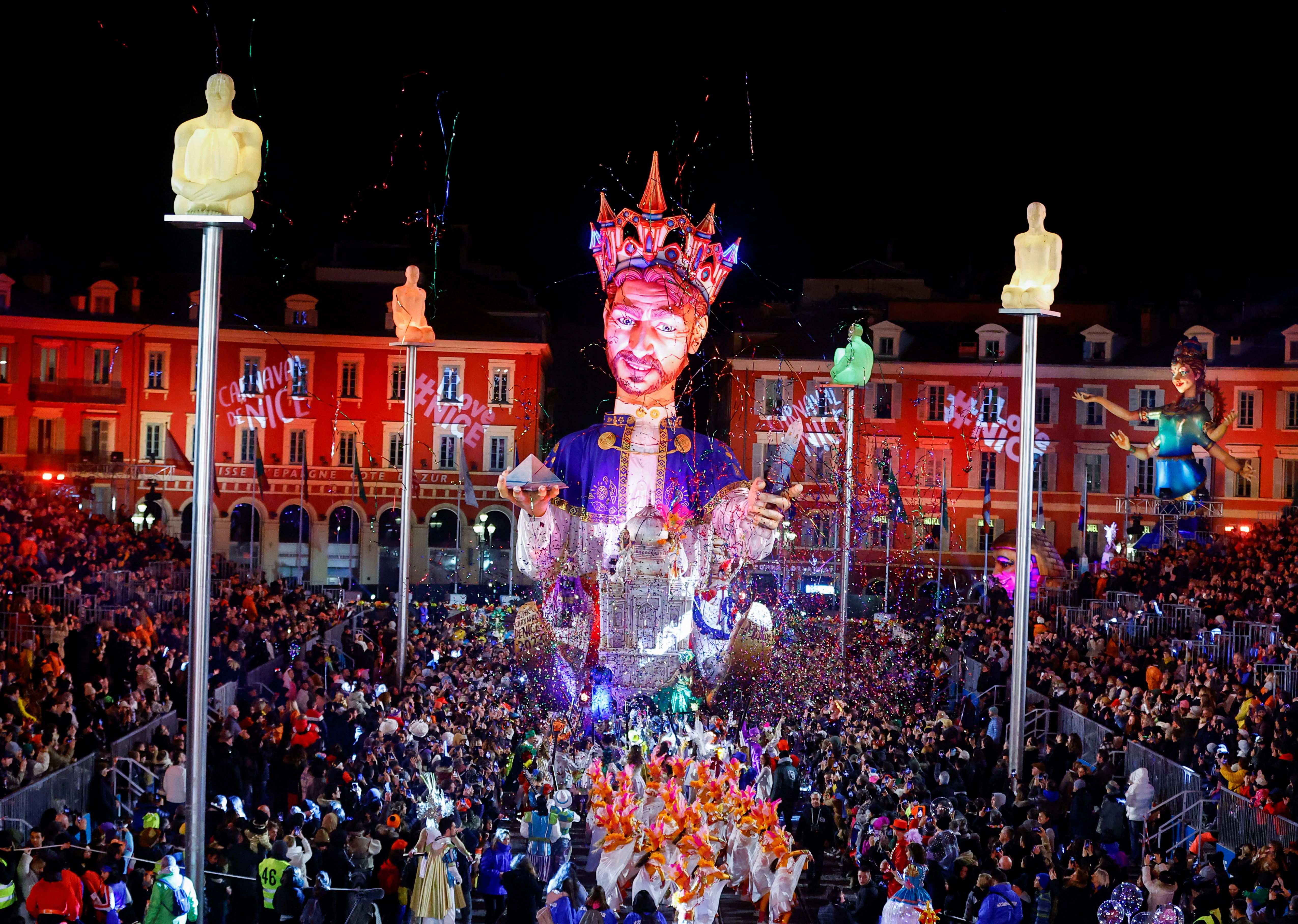 The King of Carnival float is displayed during a parade at the annual Nice's Carnival on the theme “The King of the World's Treasures”, in Nice, France on February 11, 2023. (Photo by Eric Gaillard/Reuters)