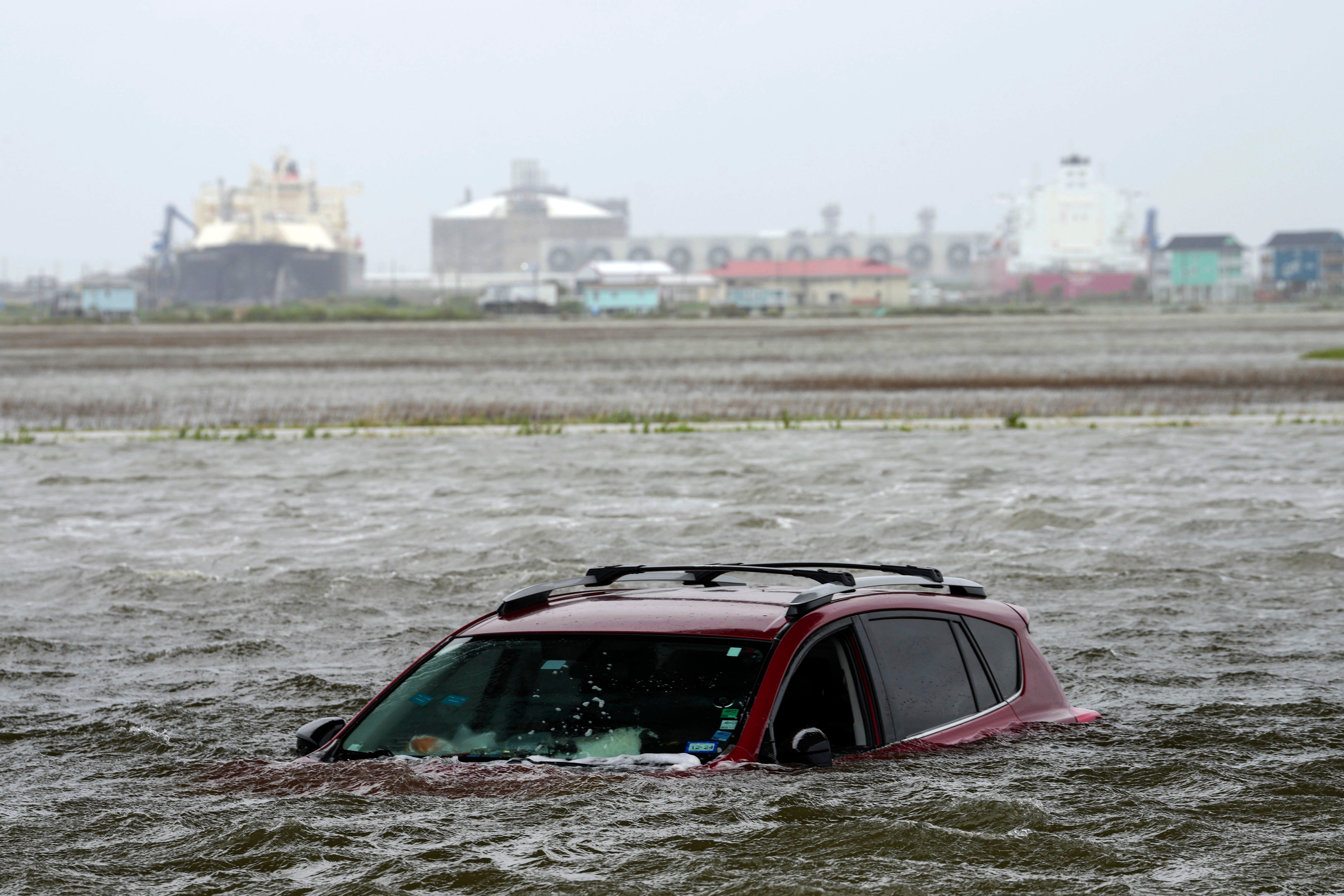 A car sits submerged in water as Tropical Storm Alberto approaches land Wednesday, June 19, 2024, in Surfside Beach, Texas. (Photo by Jon Shapley/Houston Chronicle via AP Photo)
