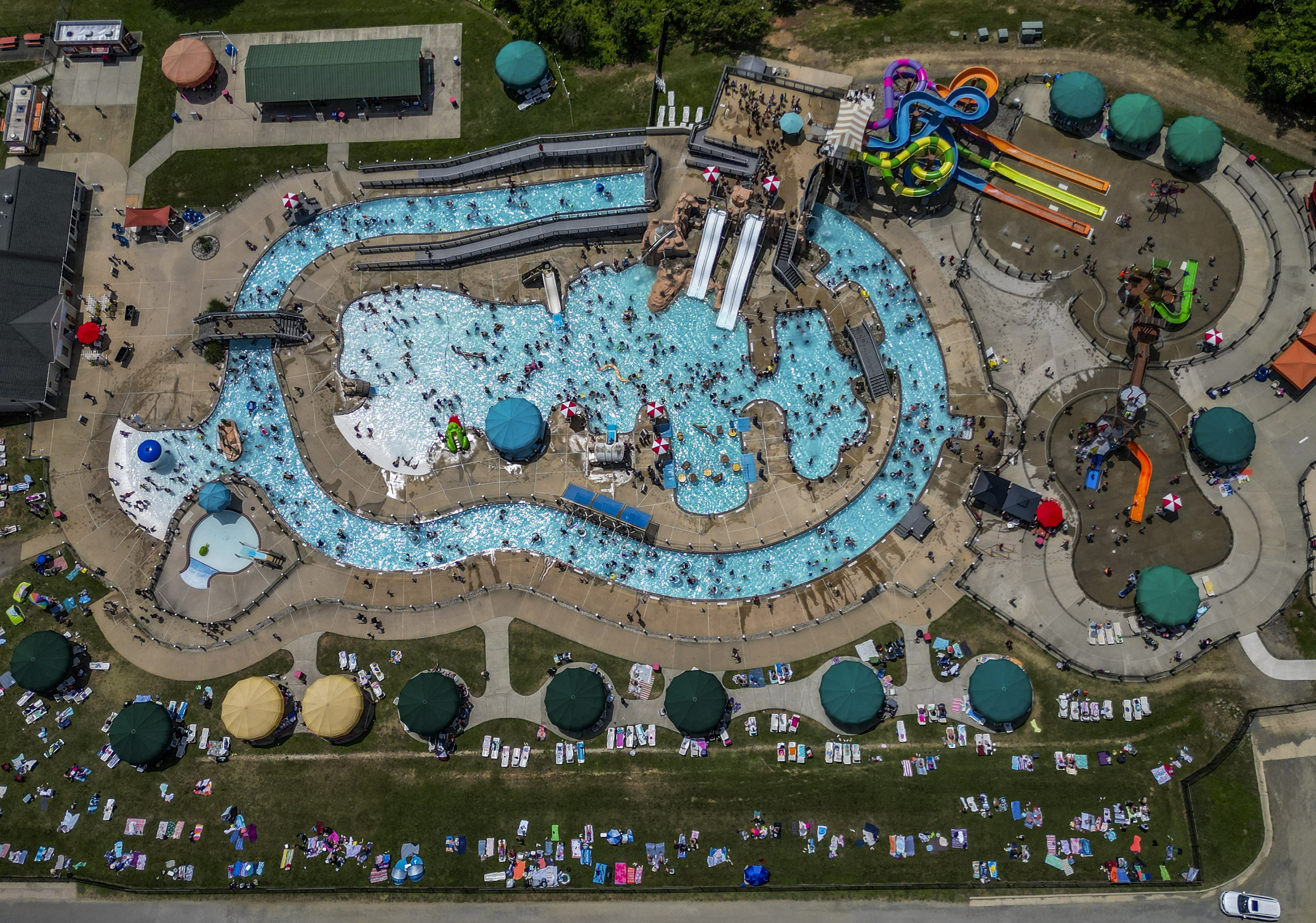 The Water Mine water park at Lake Fairfax Park is packed with visitors on this Juneteenth holiday as a heat wave intensifies across the Eastern United States on June 19, 2024, in Reston, VA. Throughout the summer, the water park will be open daily from 11am until 6pm.