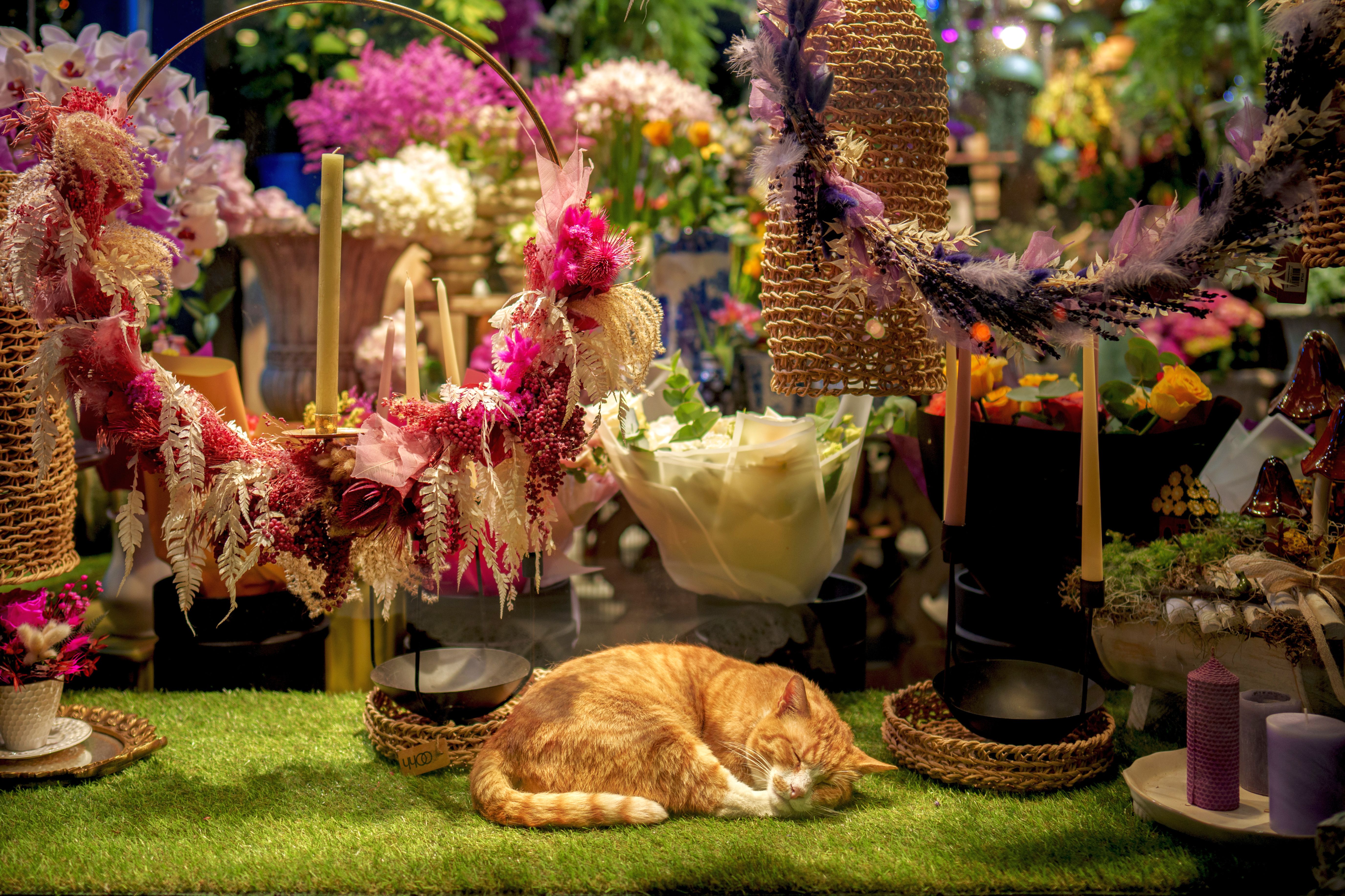 Misu the cat enjoys a nap in an air conditioned flower shop on a hot evening in Bucharest, Romania, Friday, June 21, 2024 as temperatures exceeded 35 degrees Celsius (95 Fahrenheit) during the day. The national weather forecaster issued a orange warning for western and southern Romania where temperatures are expected to reach 38 degrees Celsius (100.4 Fahrenheit) in the coming days. (Photo by Vadim Ghirda/AP Photo)