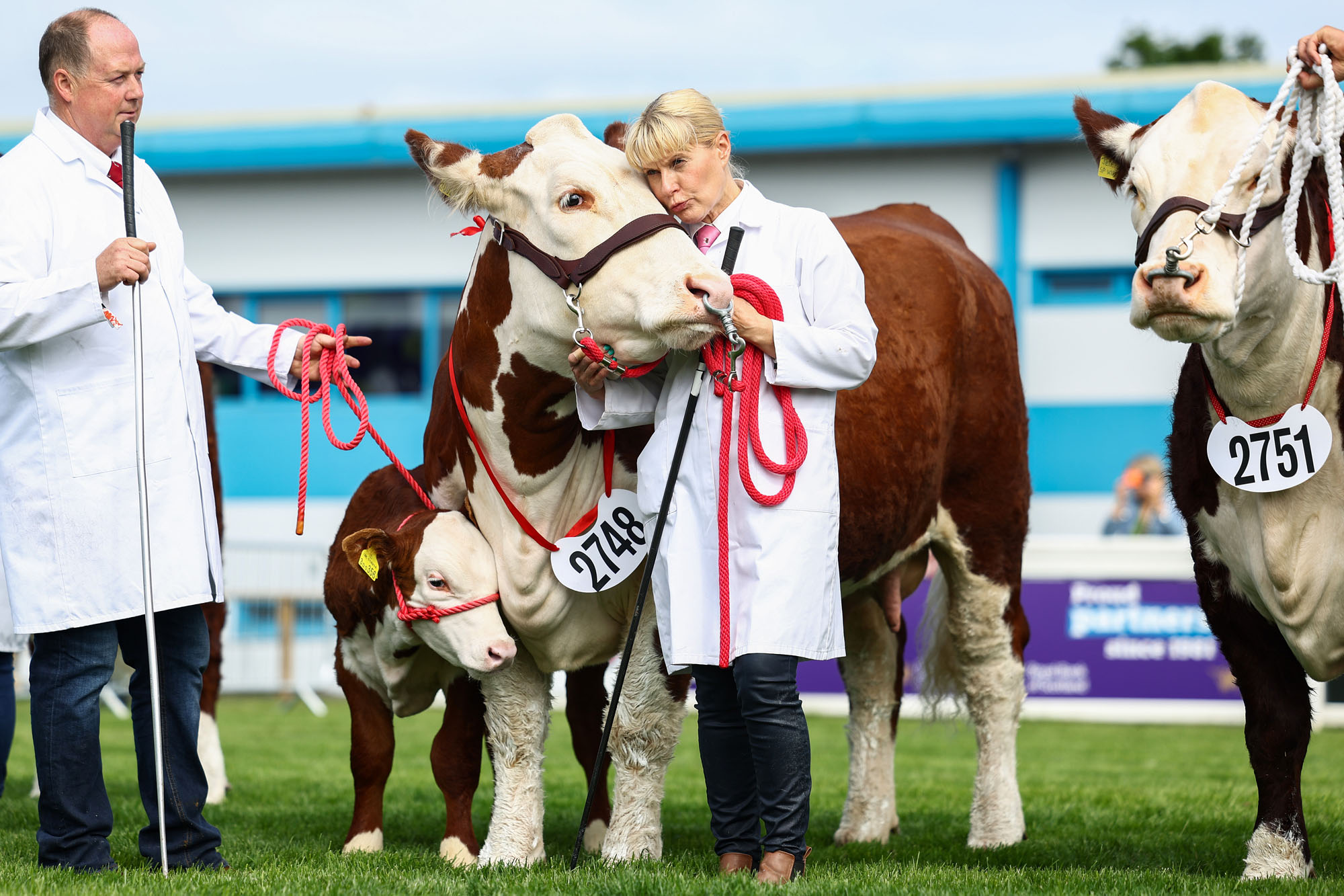 A farmer reacts with her Hereford as it’s judged at the Royal Highland Show on June 20, 2024 in Edinburgh, Scotland. The annual event aims to showcase “the best of food, farming and rural life”. (Photo by Jeff J. Mitchell/Getty Images)