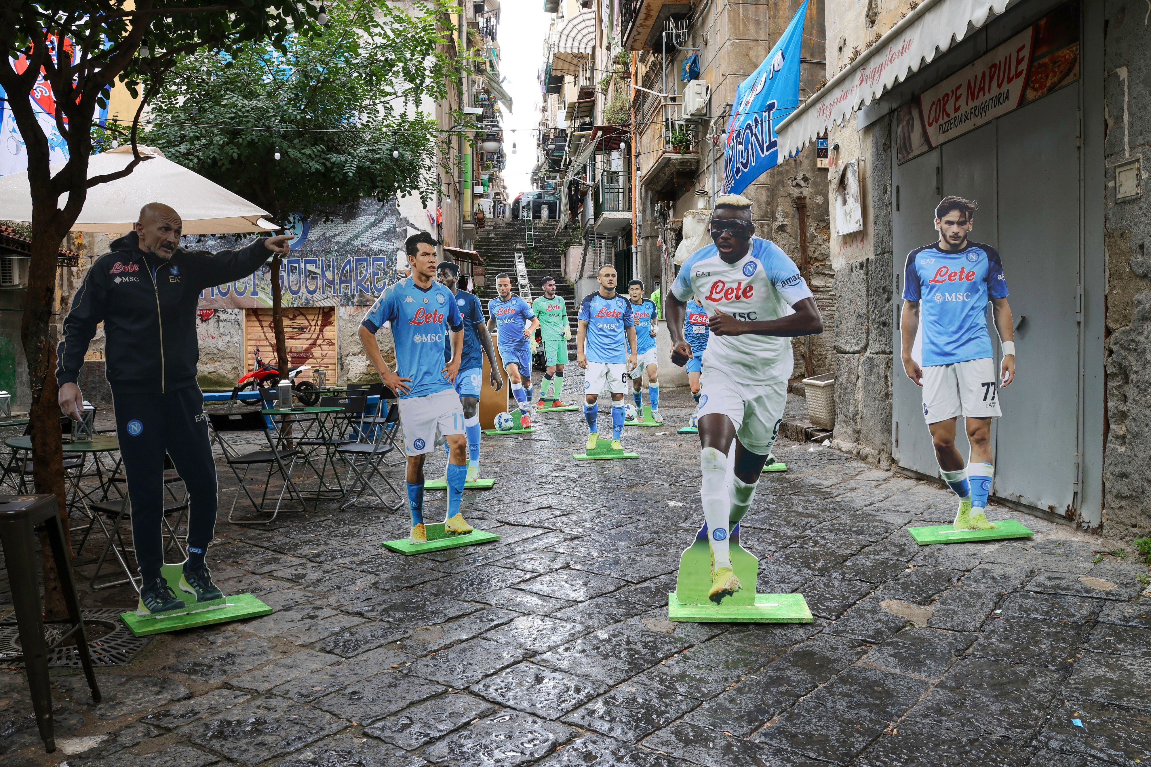 In the historic center of Naples, in the Spanish districts, the fans of the Napoli team on March 2, 2023 are preparing the celebrations for the victory of the Italian football championship. The team is 18 points clear of second in the table, on the streets flags, murals and life-size silhouettes of the players. (Photo by Fabio Sasso/Rex Features/Shutterstock)
