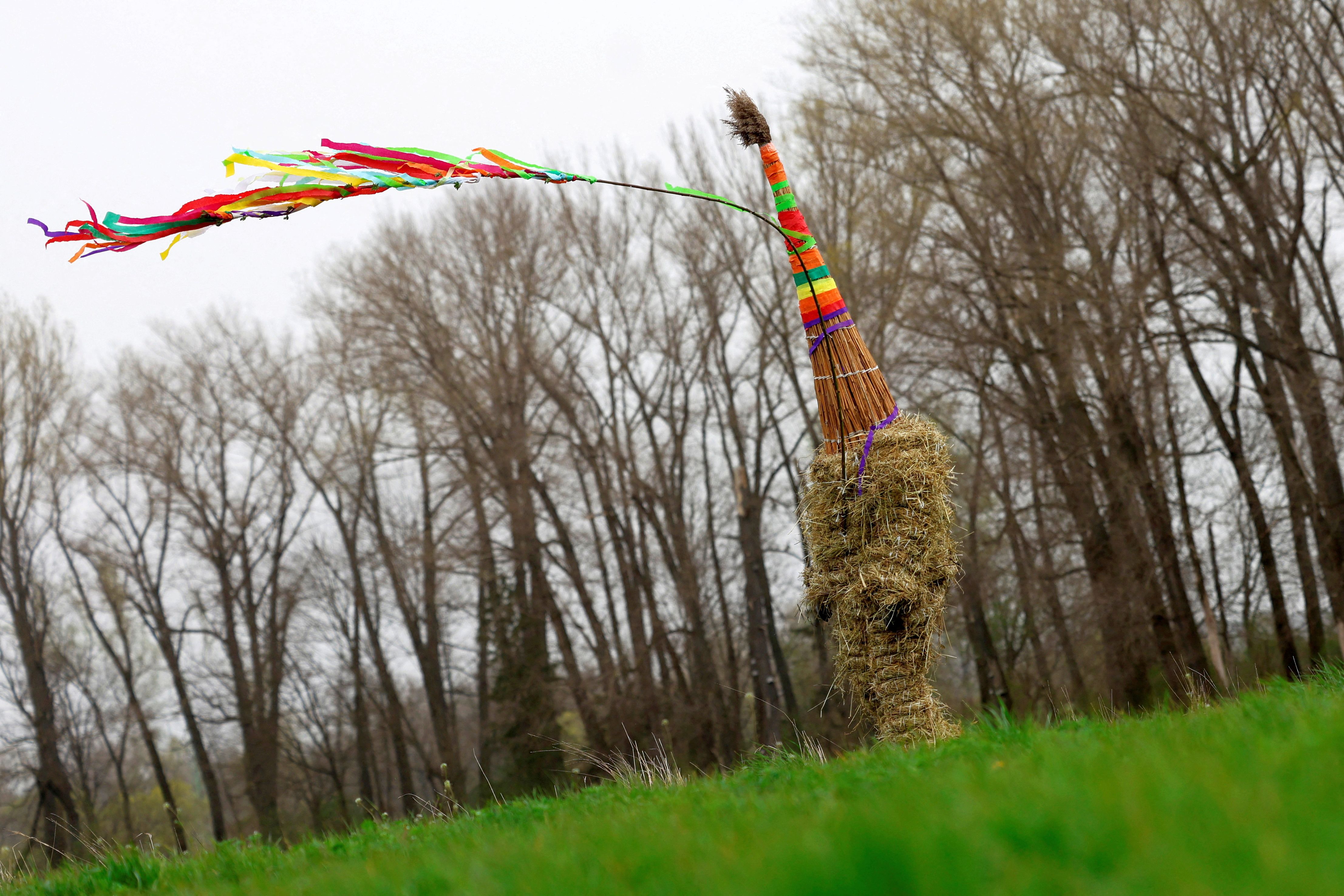 A boy dressed in a hay suit walks through the village as a part of an Easter celebration called 'Marching Judas' in the village of Stradoun near Vysoke Myto, Czech Republic, on March 30, 2024. (Photo by David W. Cerny/Reuters)