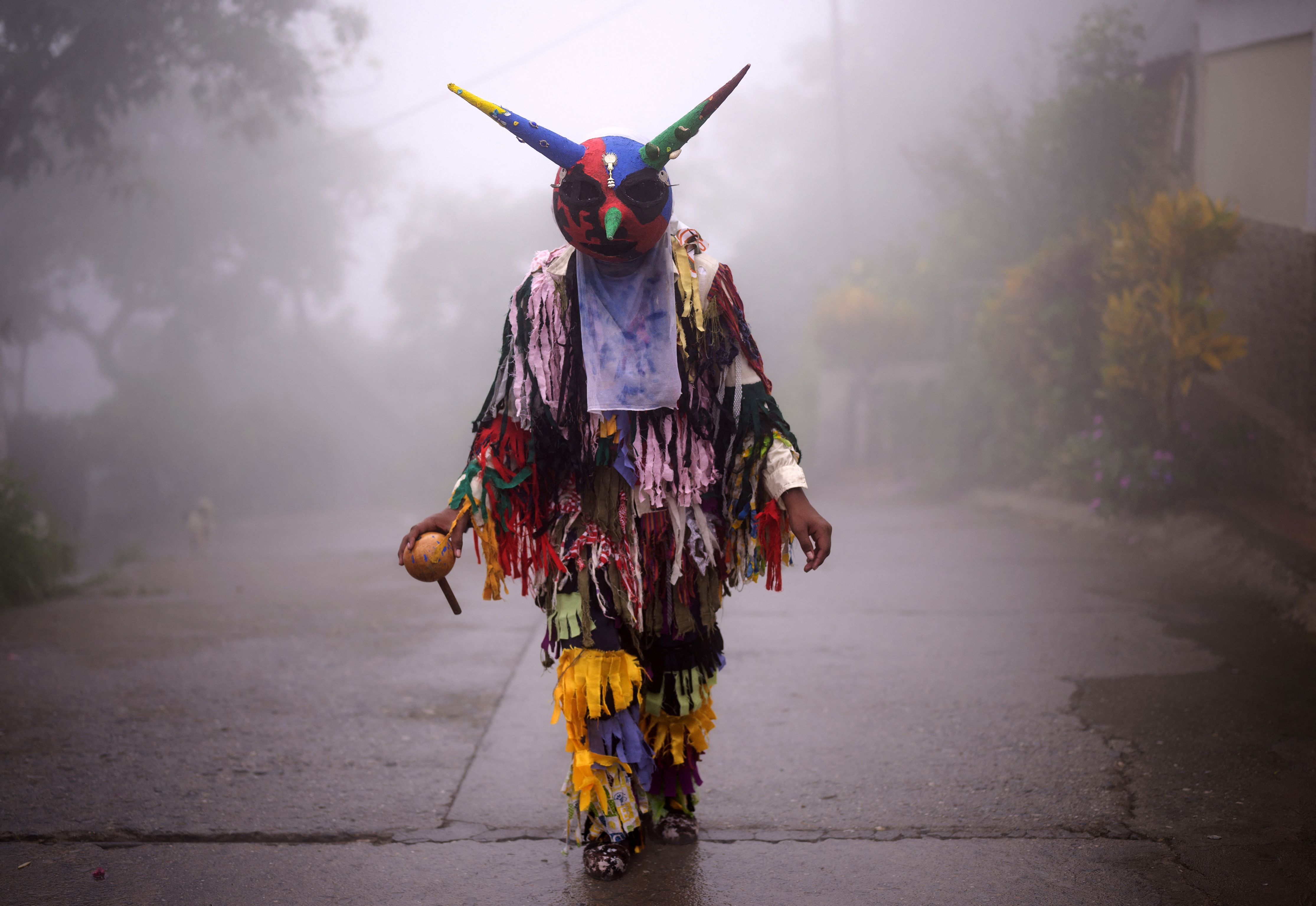 A man dressed as a Dancing Devil performs during the Catholic Corpus Christi celebrations in Tarma, Vargas State, Venezuela on May 30, 2024. The Venezuelan Dancing Devils of Corpus Christi were recognized by UNESCO as Intangible Cultural Heritage in 2012. (Photo by Gabriela Oraa/AFP Photo)
