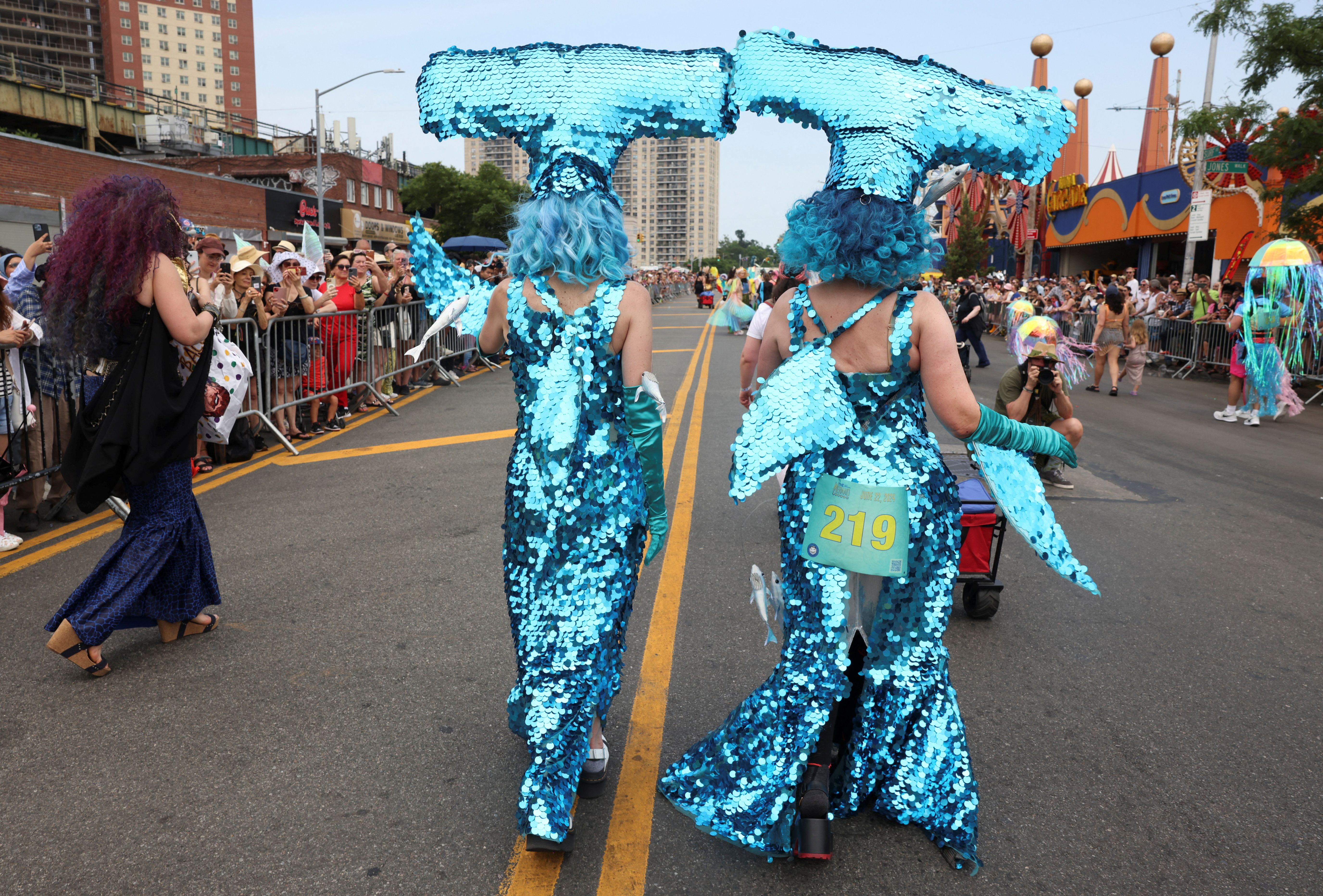 People participate in the Mermaid Parade during a heatwave in Coney Island, Brookly, New York City, U.S., June 22, 2024. (Photo by Caitlin Ochs/Reuters)
