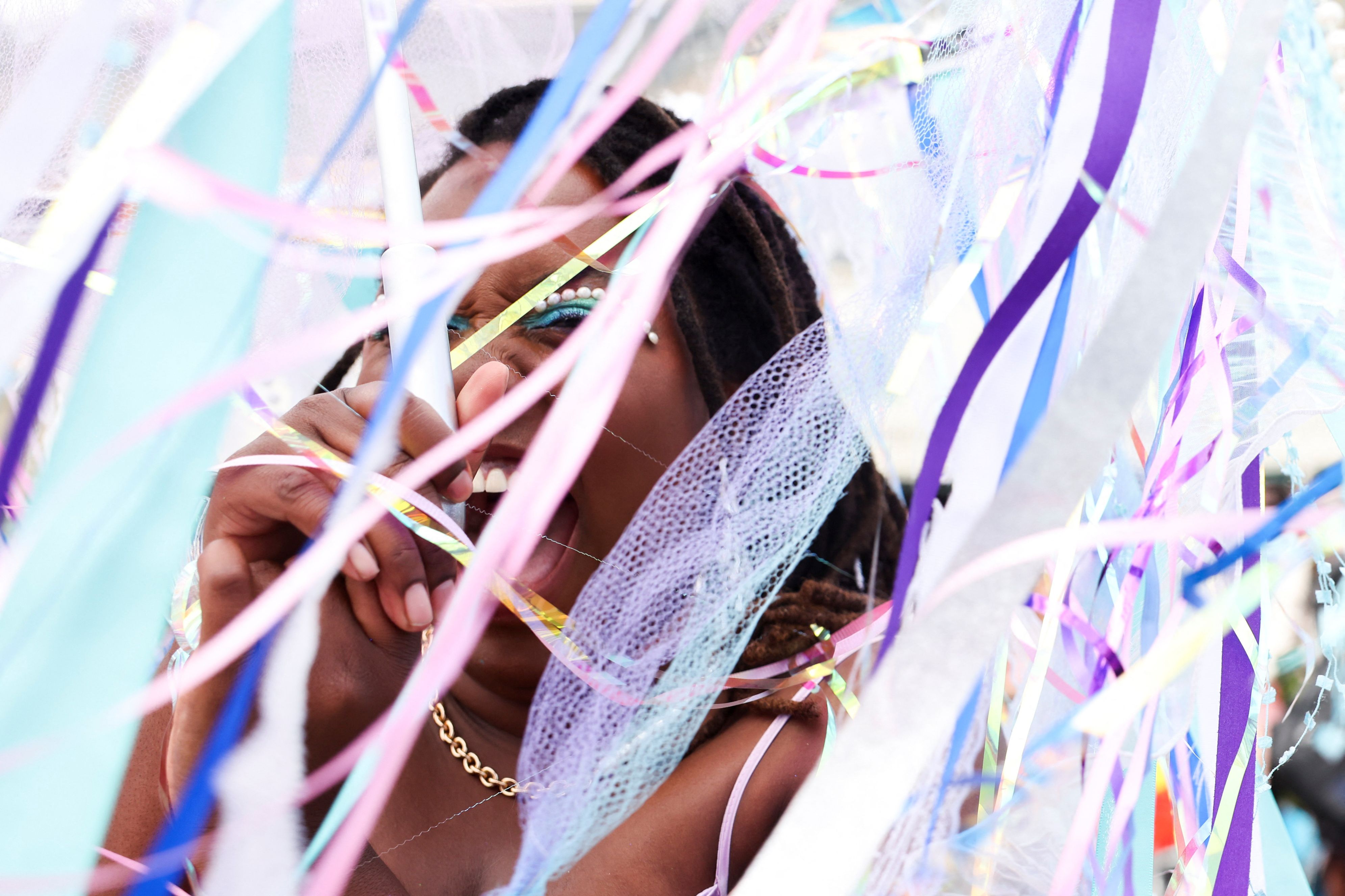 A person laughs while participating in the Mermaid Parade in Coney Island, Brookly, New York City, U.S., June 22, 2024. (Photo by Caitlin Ochs/Reuters)