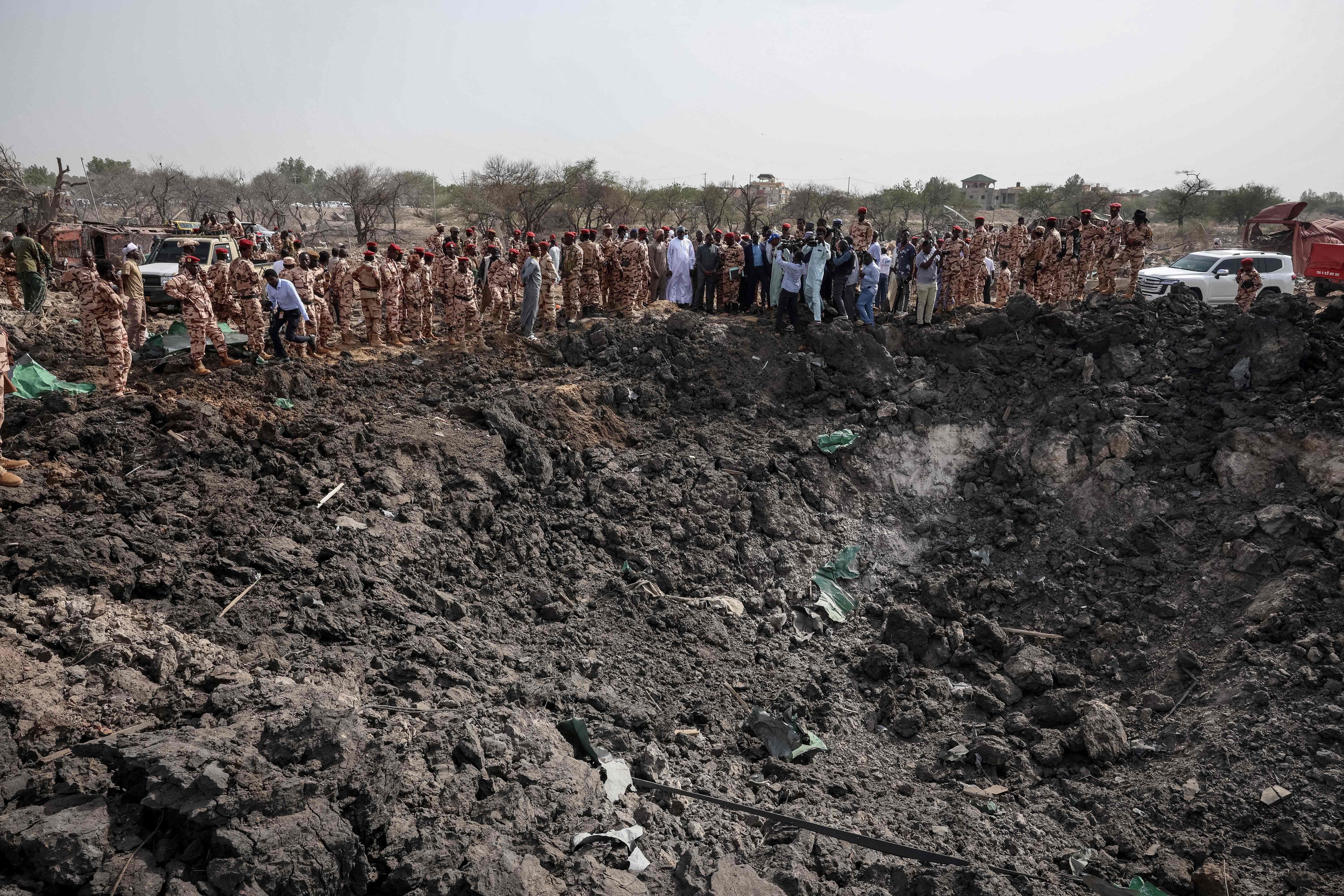 Members of the Chadian security forces stand at the scene of the fire at a ammunition depot in N’Djamena on June 19, 2024. A deadly fire erupted late on June 18, 2024 at a huge military ammunition depot in Chad's capital N'Djamena, causing weapons to fire into the air, the government and witnesses said. (Photo by Joris Bolomey/AFP Photo)