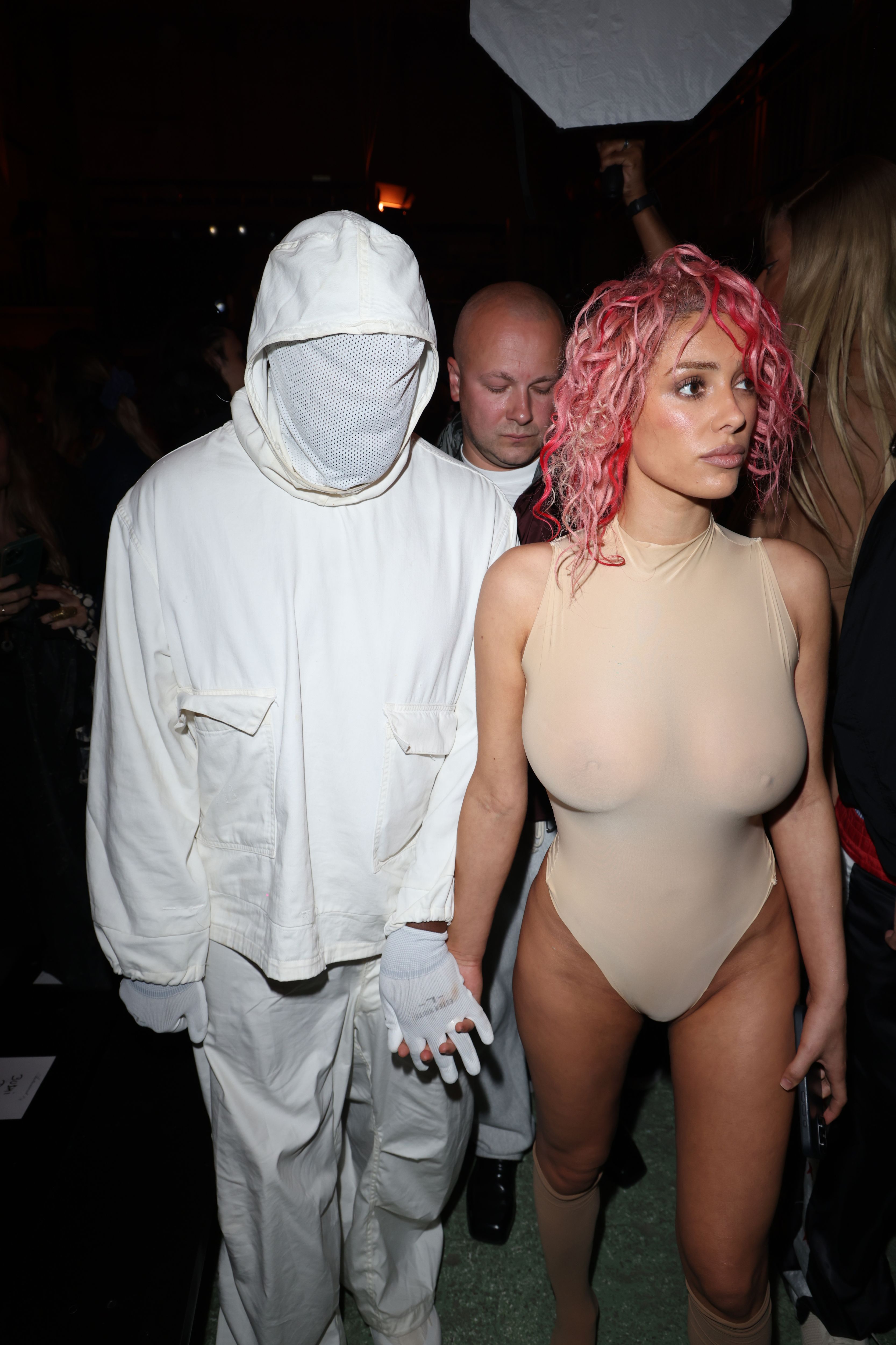 American rapper Kanye West and Australian architect and model Bianca Censori attends the Prototypes Menswear Spring/Summer 2025 show as part of Paris Fashion Week on June 19, 2024 in Paris, France. (Photo by Peter White/Getty Images)