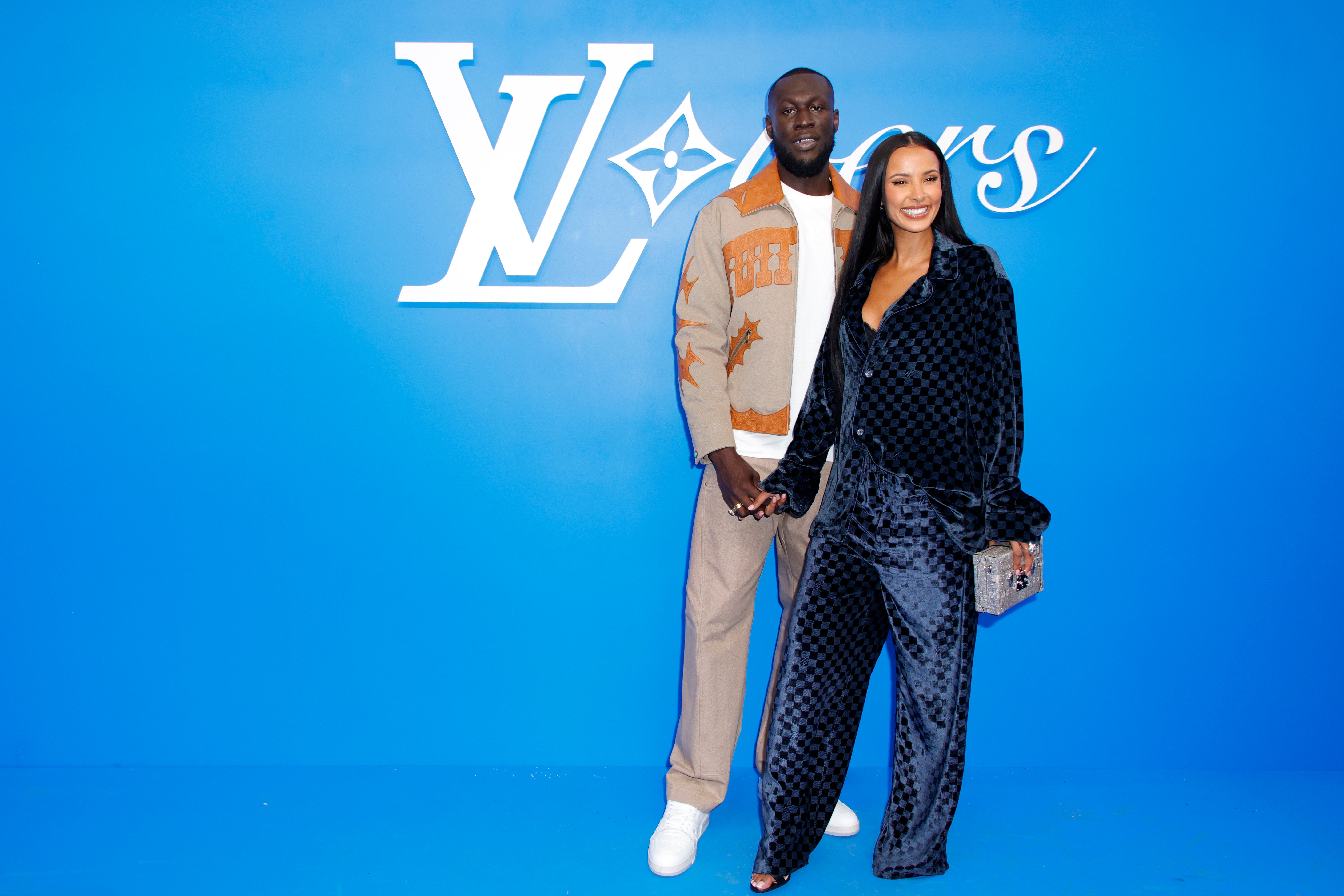 British rapper Stormzy and British TV show host Maya Jama attend the Louis Vuitton Menswear Spring/Summer 2025 show as part of Paris Fashion Week on June 18, 2024 in Paris, France. (Photo by Julien M. Hekimian/Getty Images)