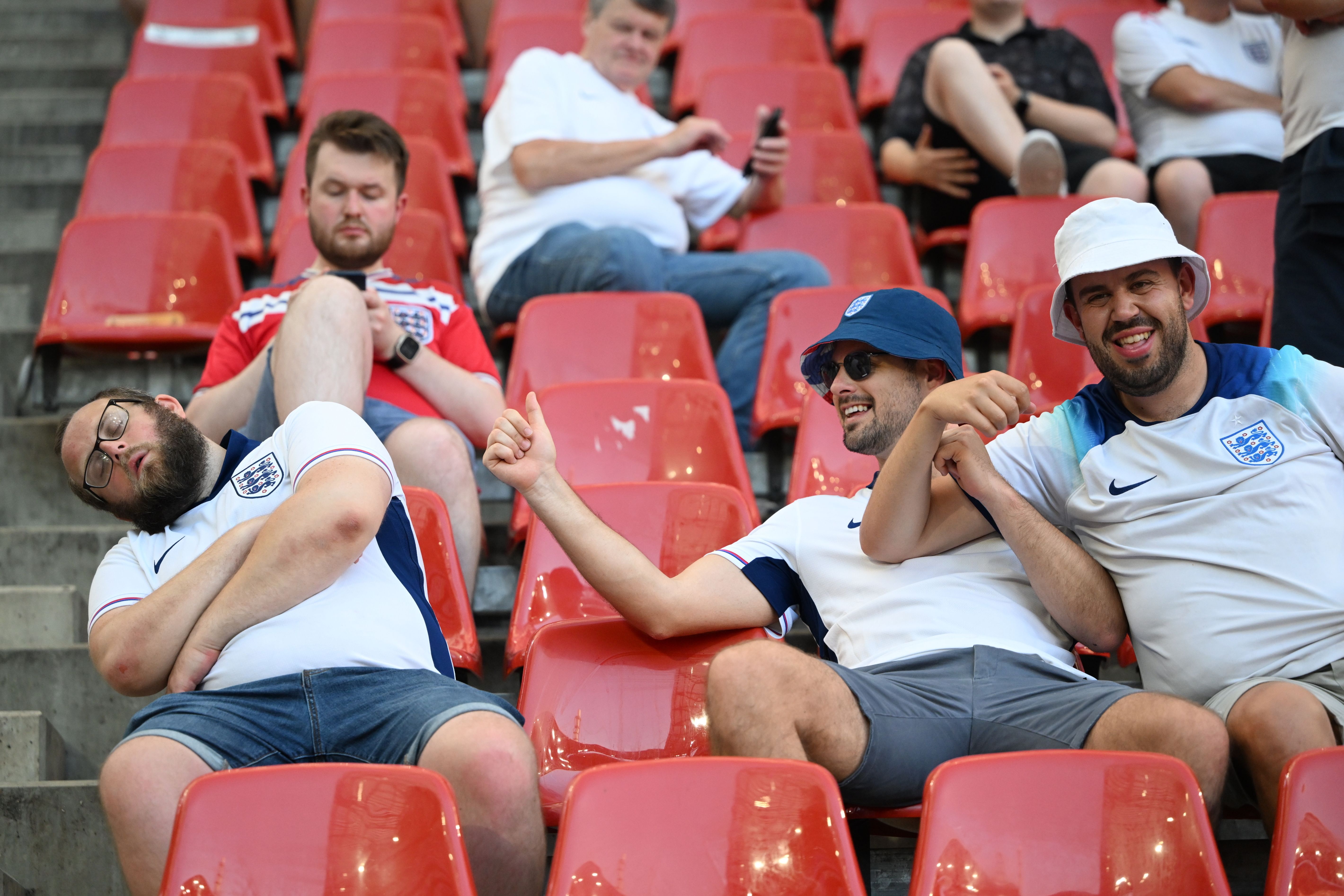 Fans of England and Slovenia support their teams ahead of UEFA EURO 2024 Group C match between England and Slovenia at Cologne Stadium in Cologne, Germany on June 25, 2024. (Photo by Gokhan Balci/Anadolu via Getty Images)