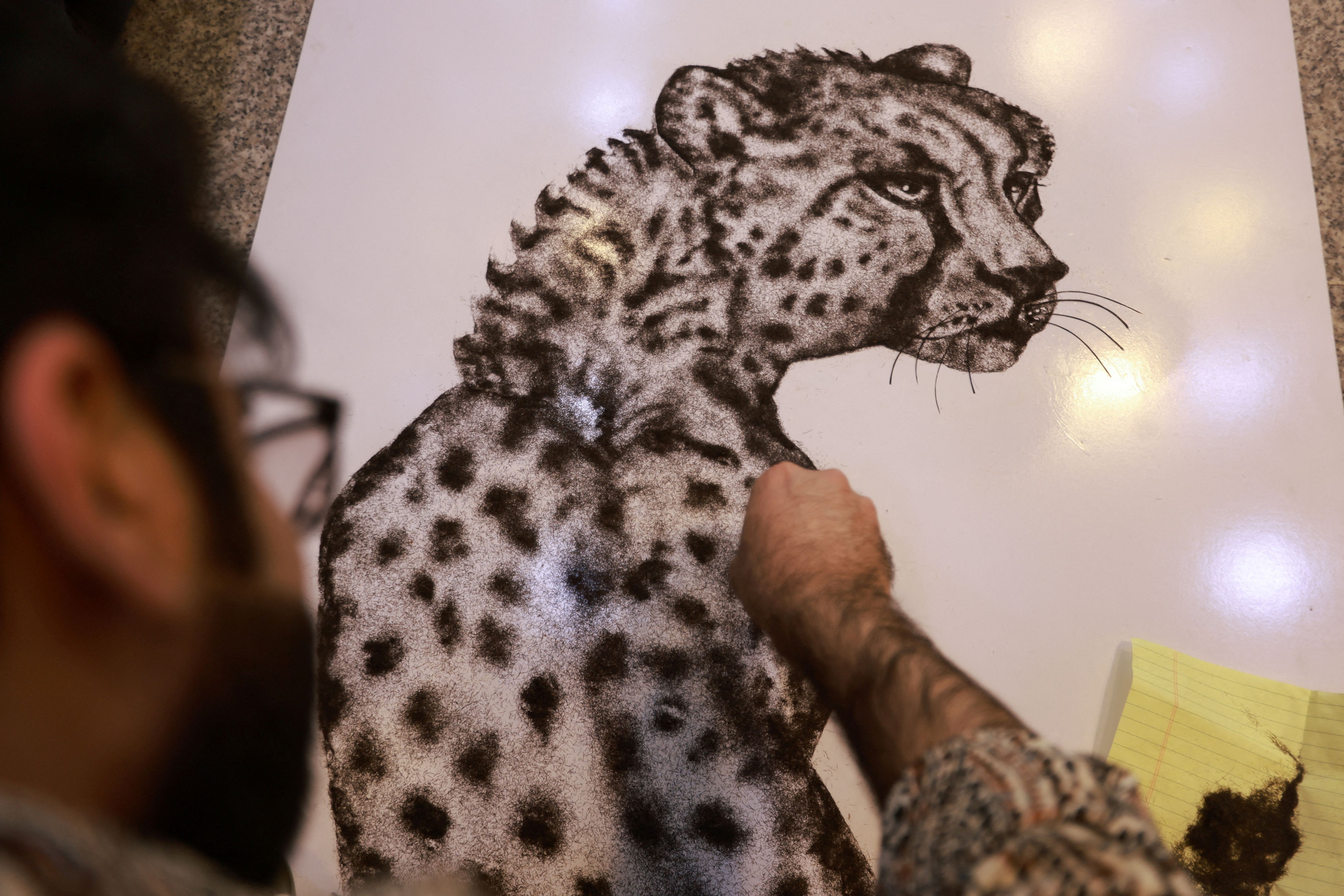Iraqi barber, Hussein Falih, 31, crafts an artwork of a tiger using his clients hair, at his shop in Baghdad, Iraq, on May 8, 2024. (Photo by Ahmed Saad/Reuters)