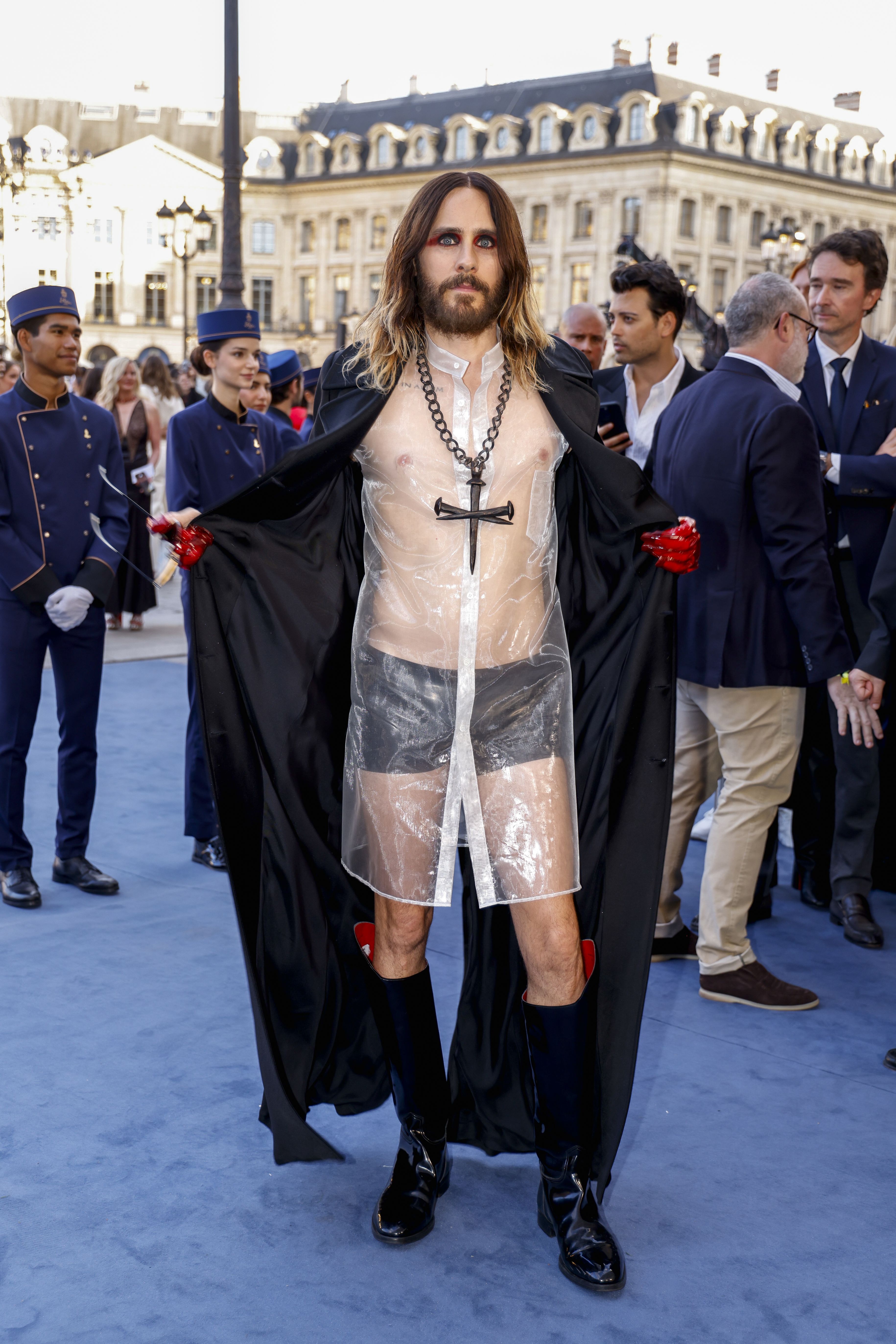 American actor and musician Jared Leto poses for photographers upon arrival at the Vogue World event on Sunday, June 23, 2024 in Paris. (Photo by Vianney Le Caer/Invision/AP Photo)