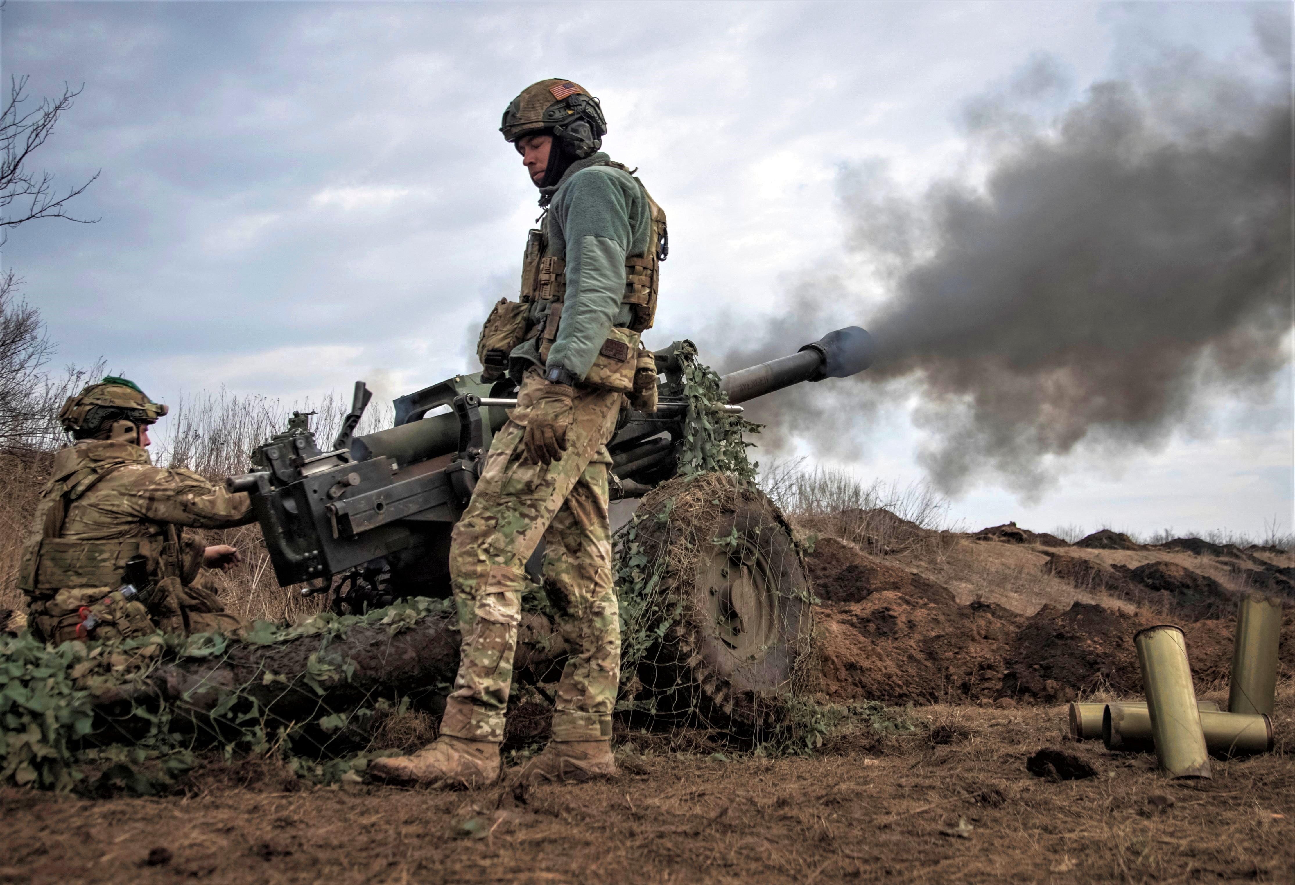 Ukrainian service members from a battalion, named of nom-de-guerre of their commander “Da Vinci”, Hero of Ukraine, who was killed in a fight against Russian troops, fire a howitzer M119 at a front line, amid Russia's attack on Ukraine, near the city of Bakhmut, Ukraine on March 10, 2023. (Photo by Oleksandr Ratushniak/Reuters)