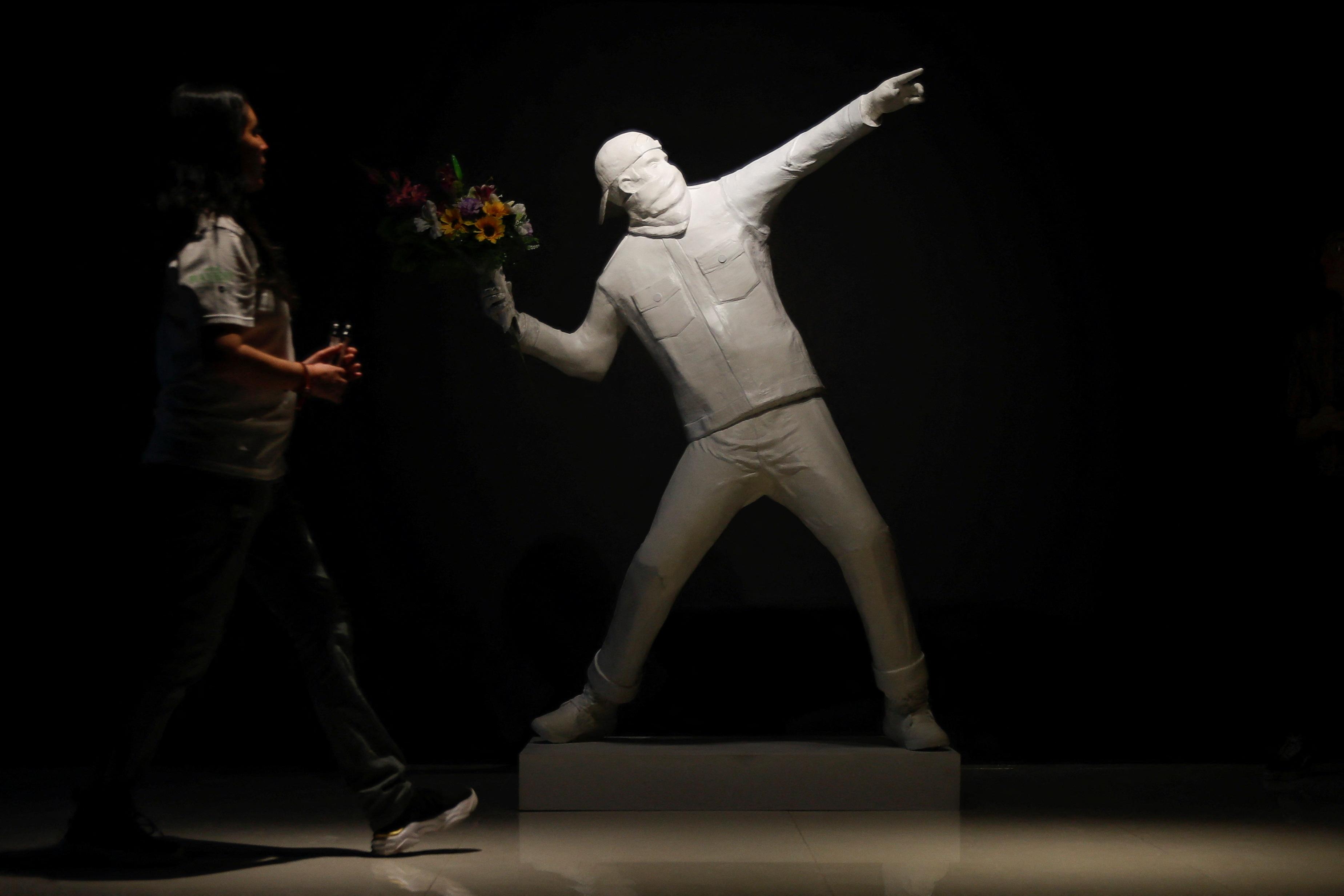 A woman visits the “Inside Banksy, unauthorized exhibition” in Mexico City, Mexico on March 14, 2023. (Photo by Raquel Cunha/Reuters)