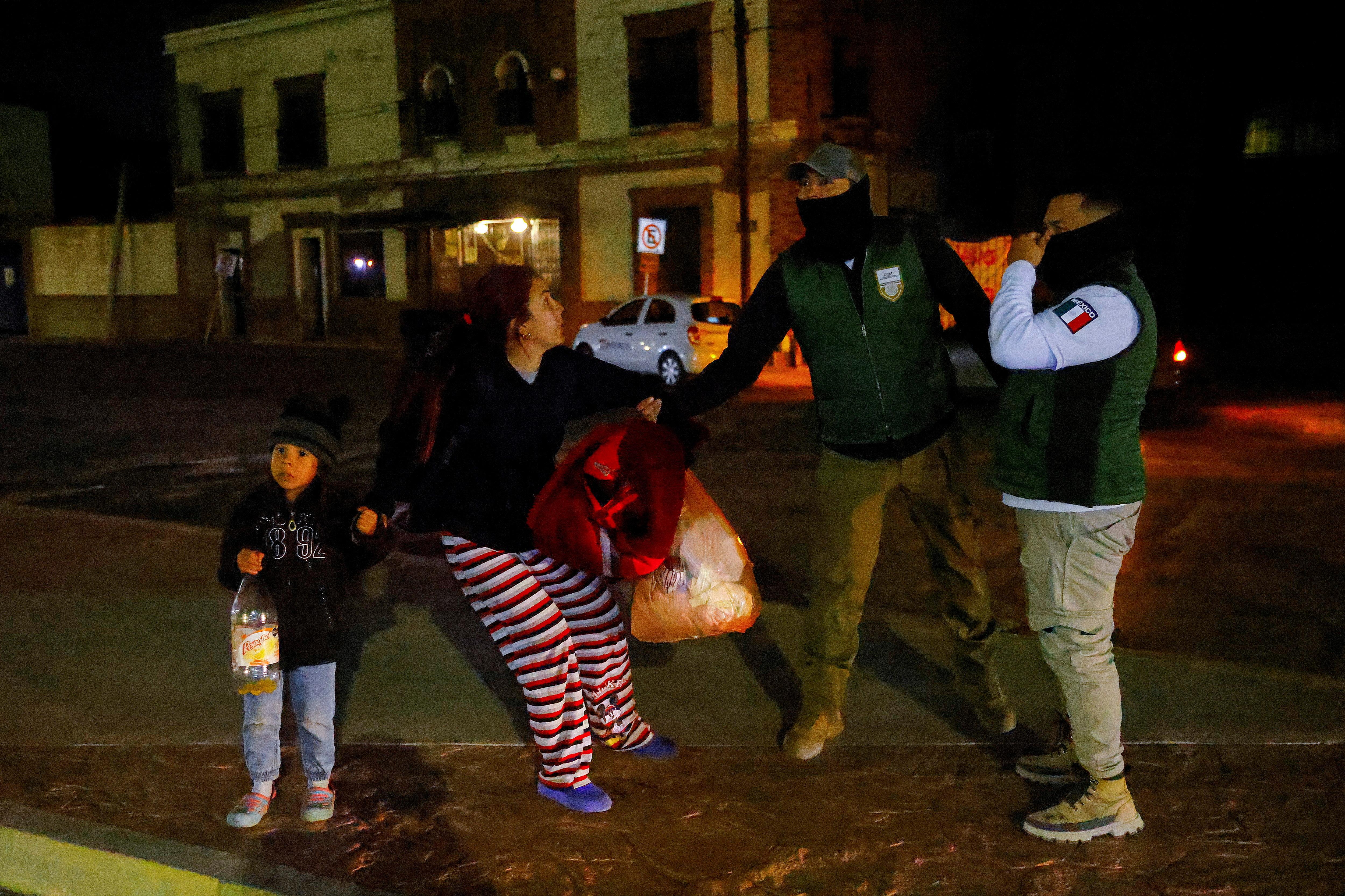 A migrant from Venezuela, in the company of her daughter, is pulled during an operation by agents from Mexico's National Institute of Migration (INM) and the police in downtown Ciudad Juarez, Mexico on March 13, 2023. (Photo by Jose Luis Gonzalez/Reuters)