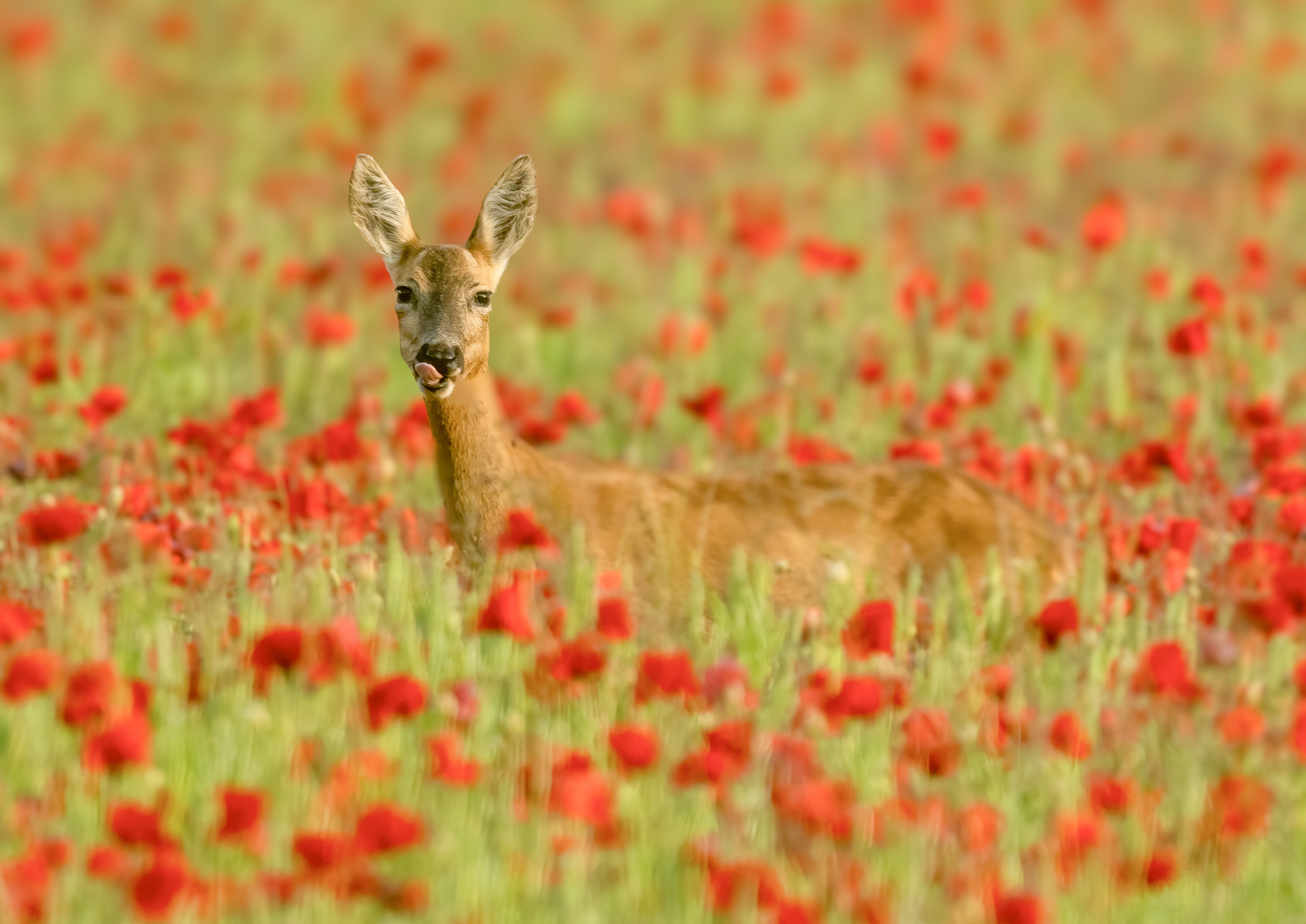 A female roe deer relishes her surroundings in a field near Chesham, Buckinghamshire, England in the second decade of June 2024. (Photo by Martin West/Solent News)