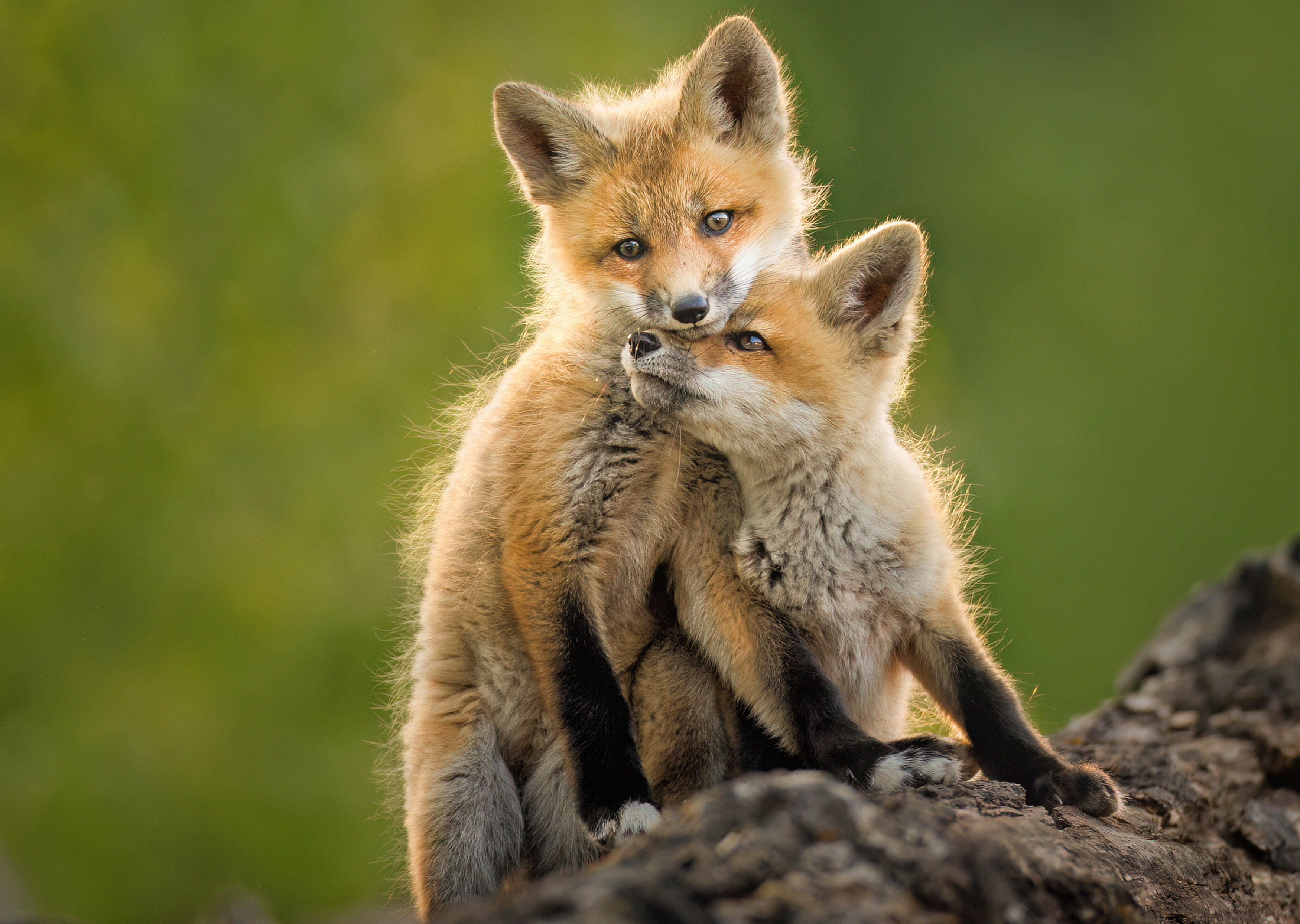 Two fox cubs play together in Lac La Biche, Alberta, western Canada in the second decade of June 2024. (Photo by Donna Feledichuk/Solent News)