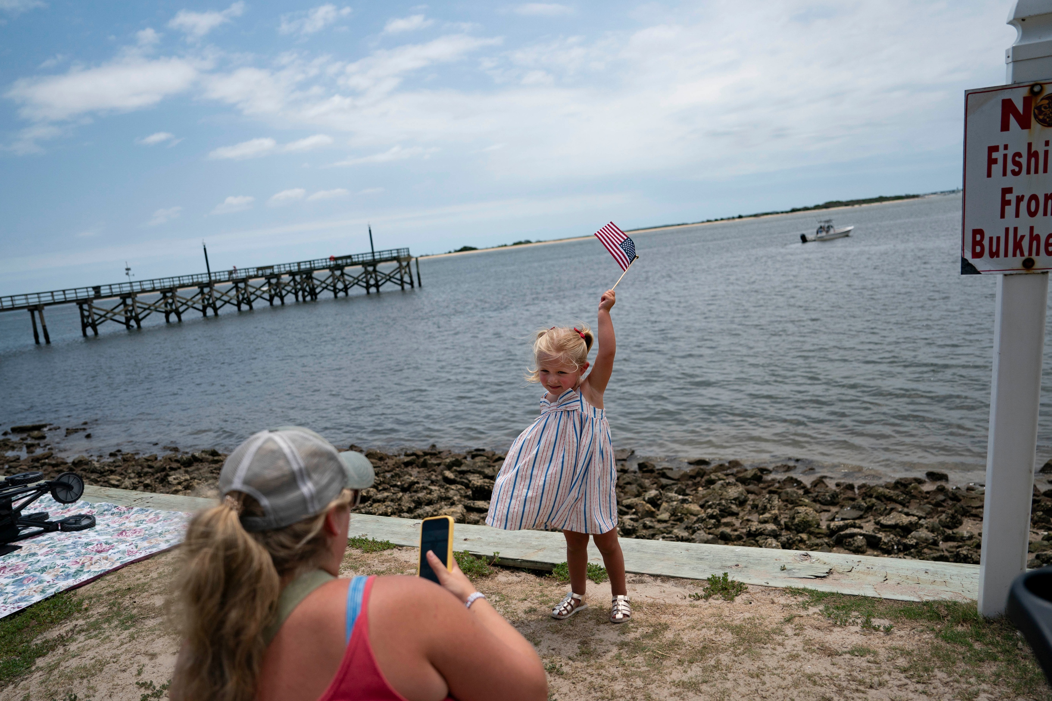 A girl waves a flag after annual Independence Day Parade on July 4, 2024 in Southport, North Carolina. The U.S. Declaration of Independence was signed on this day in 1776, marking the 248th anniversary since the nation's break from Great Britain. The first recorded Independence Day celebration in Southport was in 1795. (Photo by Allison Joyce/Getty Images)