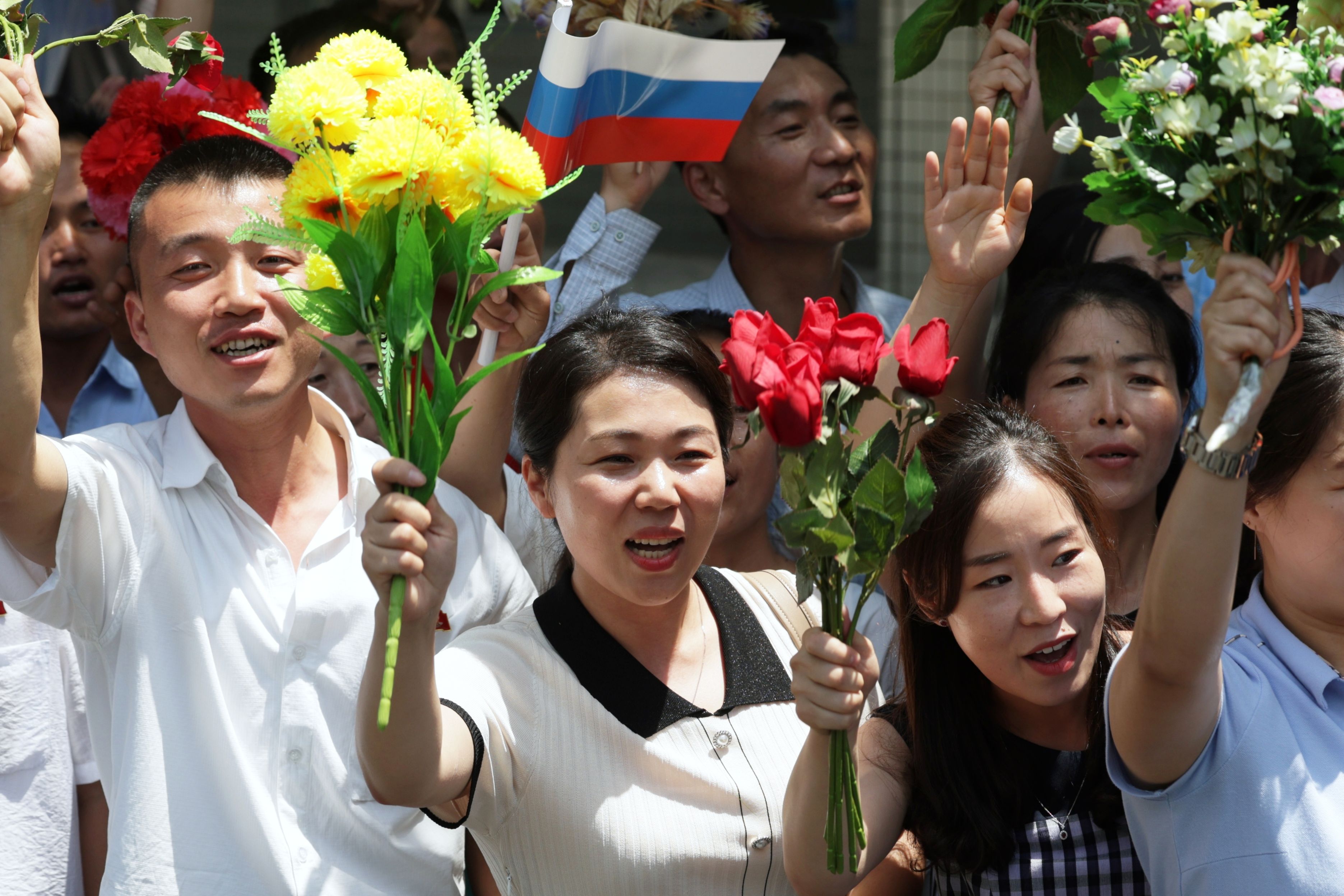 North Korean people line up on the street side and welcome the motorcade of Russian President Vladimir Putin and North Korean leader Kim Jong Un during their meeting in Pyongyang, North Korea, 19 June 2024. The Russian president is on a state visit to North Korea from 18-19 June at the invitation of the North Korean leader. He last visited North Korea in 2000, shortly after his first inauguration as president. (Photo by Gavriil Grigorov/EPA/EFE)