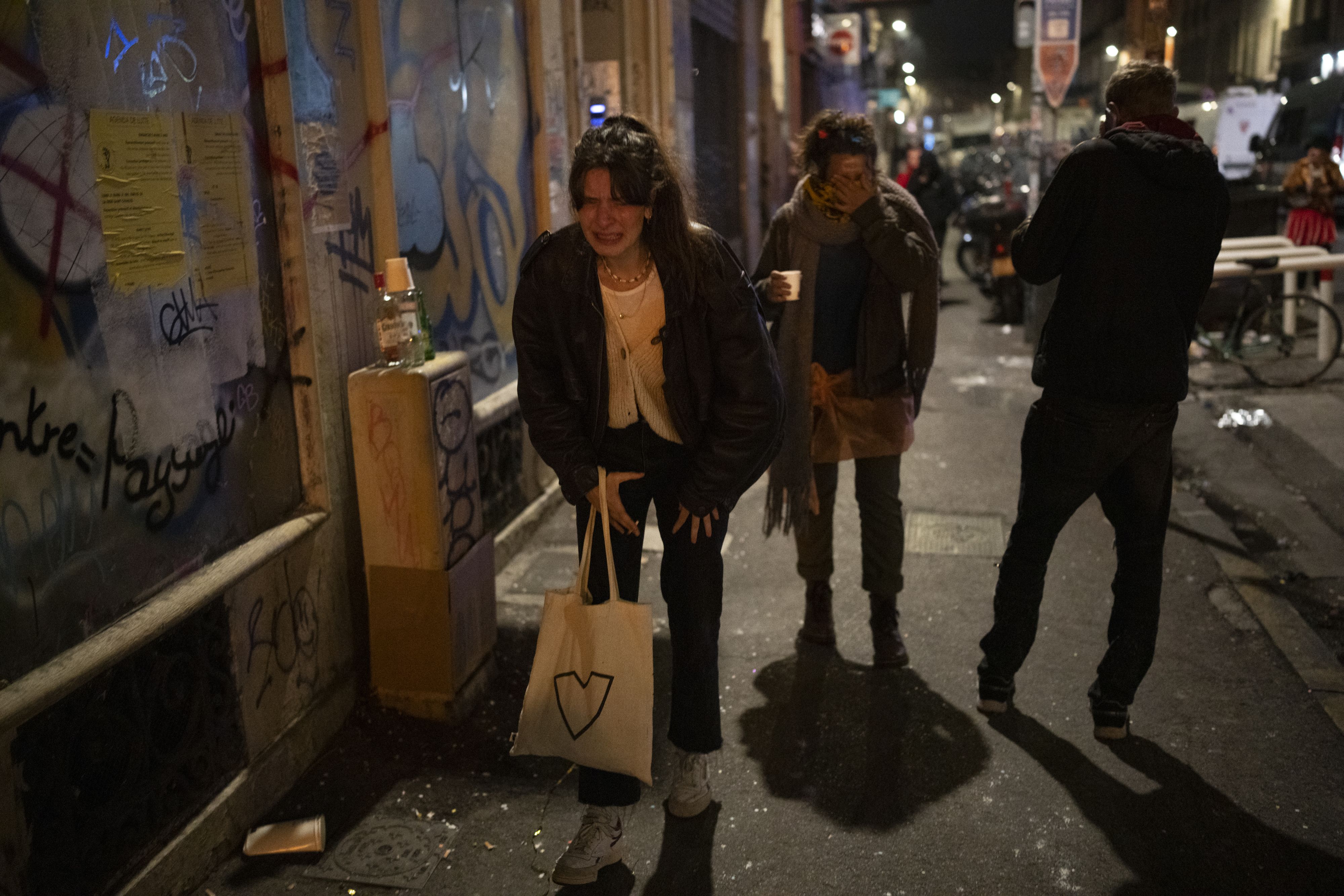 Carnival goers react to pepper spray used by riot police during Marseille's Carnaval de la Plaine in Marseille, southern France, Sunday, March 19, 2023. (Photo by Daniel Cole/AP Photo)