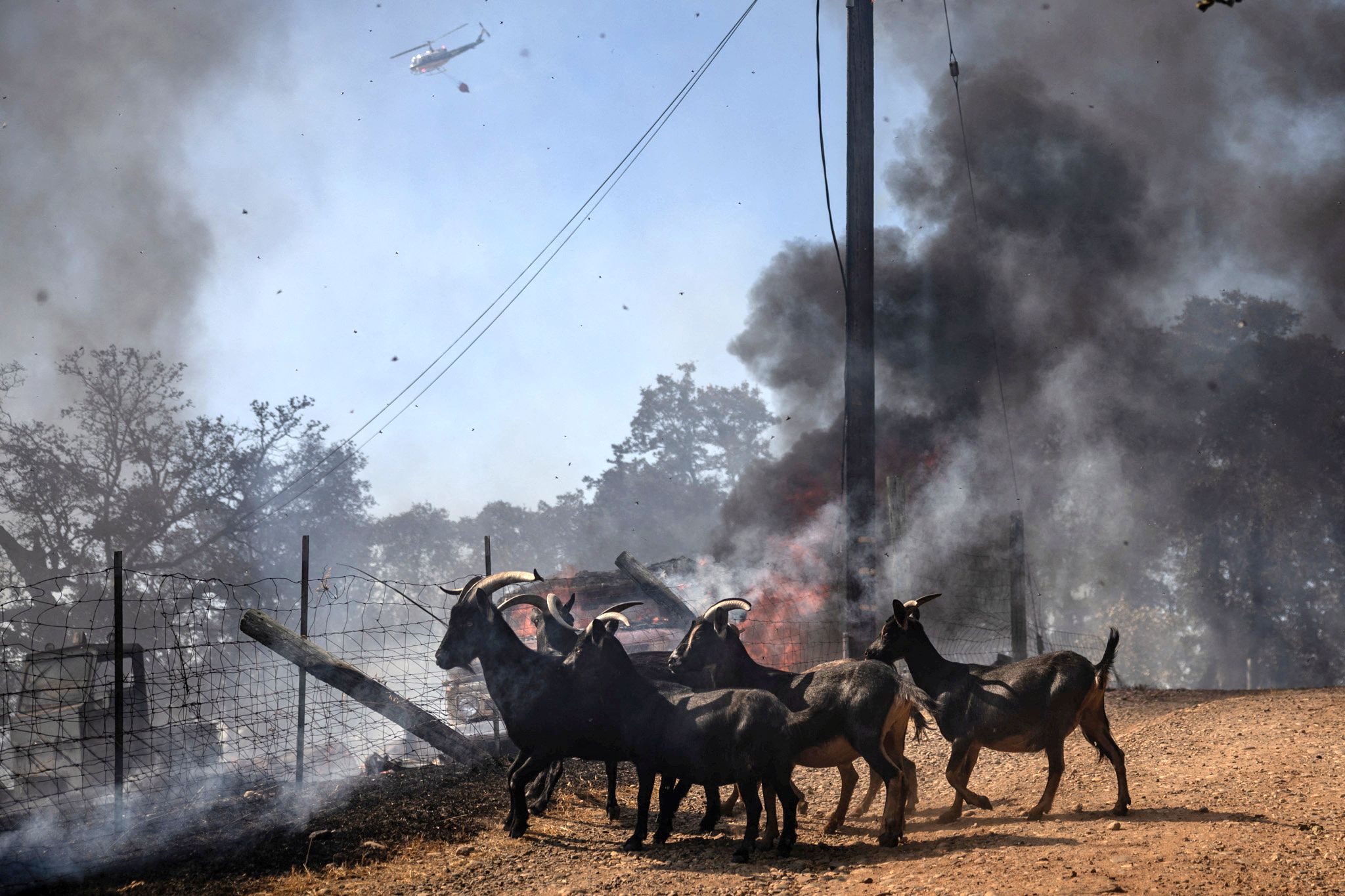 Goats run away as firefighters battle the Grubbs fire near Palermo, California, U.S., July 3, 2024. (Photo by Carlos Barria/Reuters)
