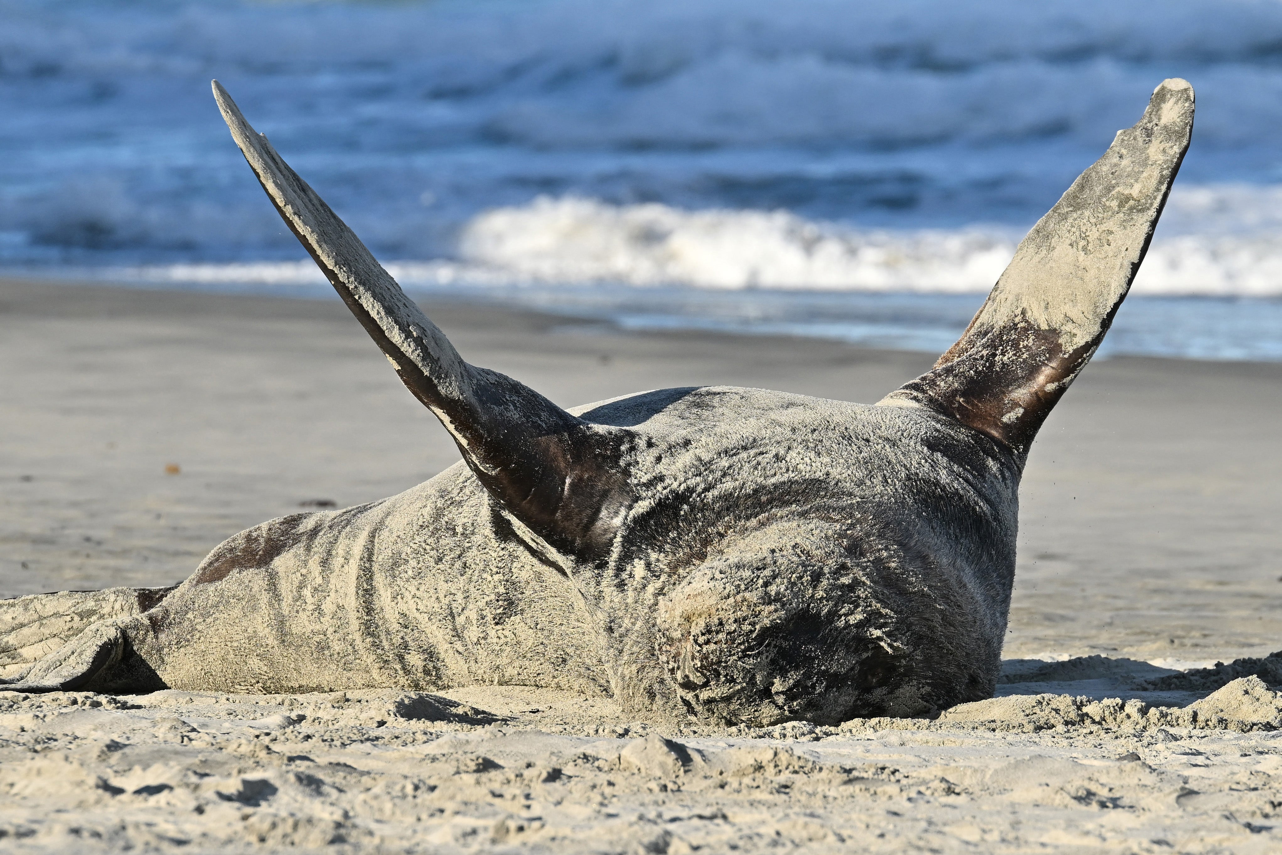 A sea lion rests at Allans Beach in Portobello on the Otago Peninsula on July 5, 2024. (Photo by Sanka Vidanagama/AFP Photo)
