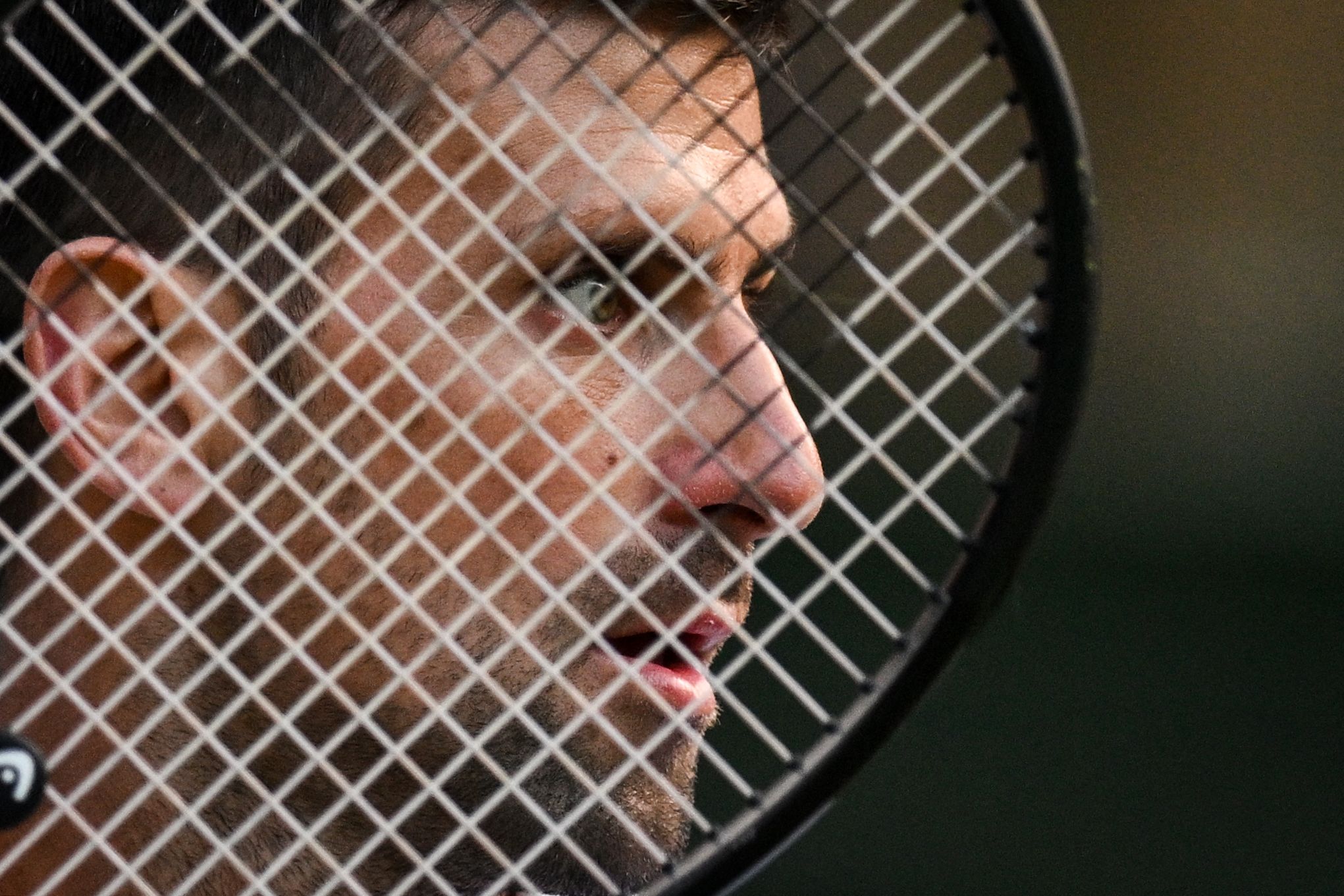 Serbia's Novak Djokovic reacts as he plays against Australia's Alexei Popyrin during their men's singles tennis match on the sixth day of the 2024 Wimbledon Championships at The All England Lawn Tennis and Croquet Club in Wimbledon, southwest London, on July 6, 2024. (Photo by Andrej Isakovic/AFP Photo)