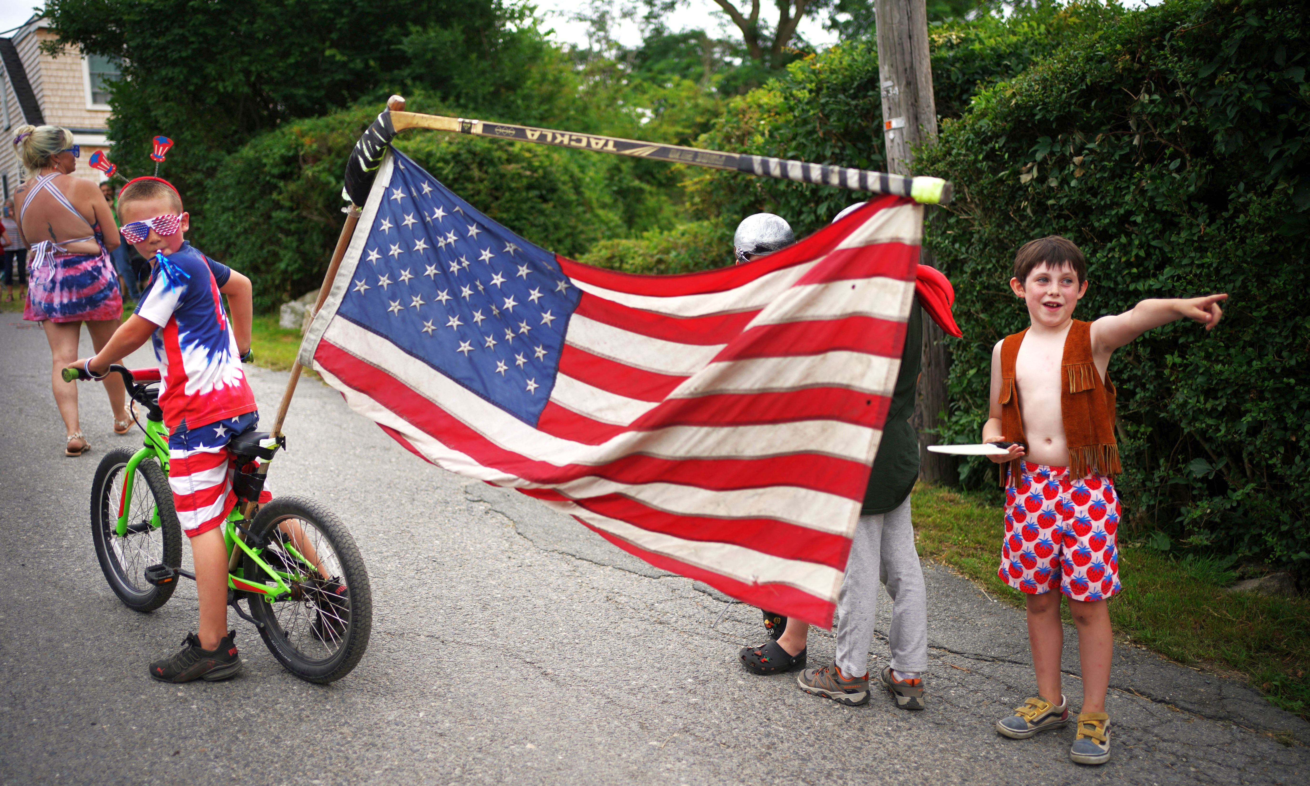 Kids wait to lead their local Fourth of July Parade through the Lanesville neighborhood of Gloucester, Massachusetts, U.S., July 4, 2024. (Photo by Brian Snyder/Reuters)