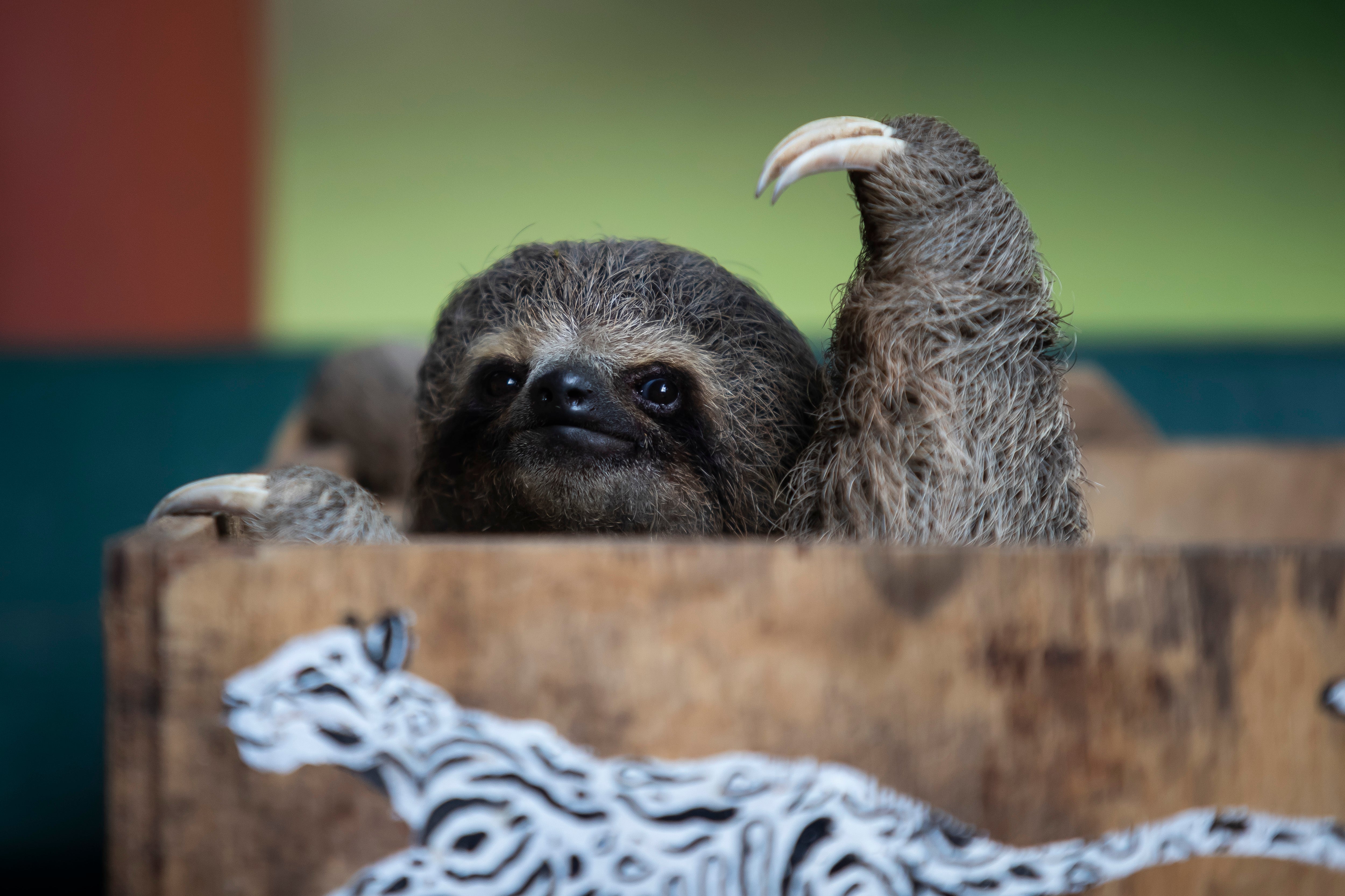 A young sloth named Gloria, that was rescued after being stolen from the wild destined for trafficking, peeks out of the box it is being taken to be released at the city's Botanical Garden in Rio de Janeiro, Brazil, Monday, March 13, 2023. Gloria was cared for by the Free Life Institute NGO that rehabilitates injured wildlife found in the surrounding Rio area and returns them, when possible, back to the wild. Those that are too injured to be released are sent to other rehab centers or sanctuaries to live out their lives in protected environments. (Photo by Bruna Prado/AP Photo)