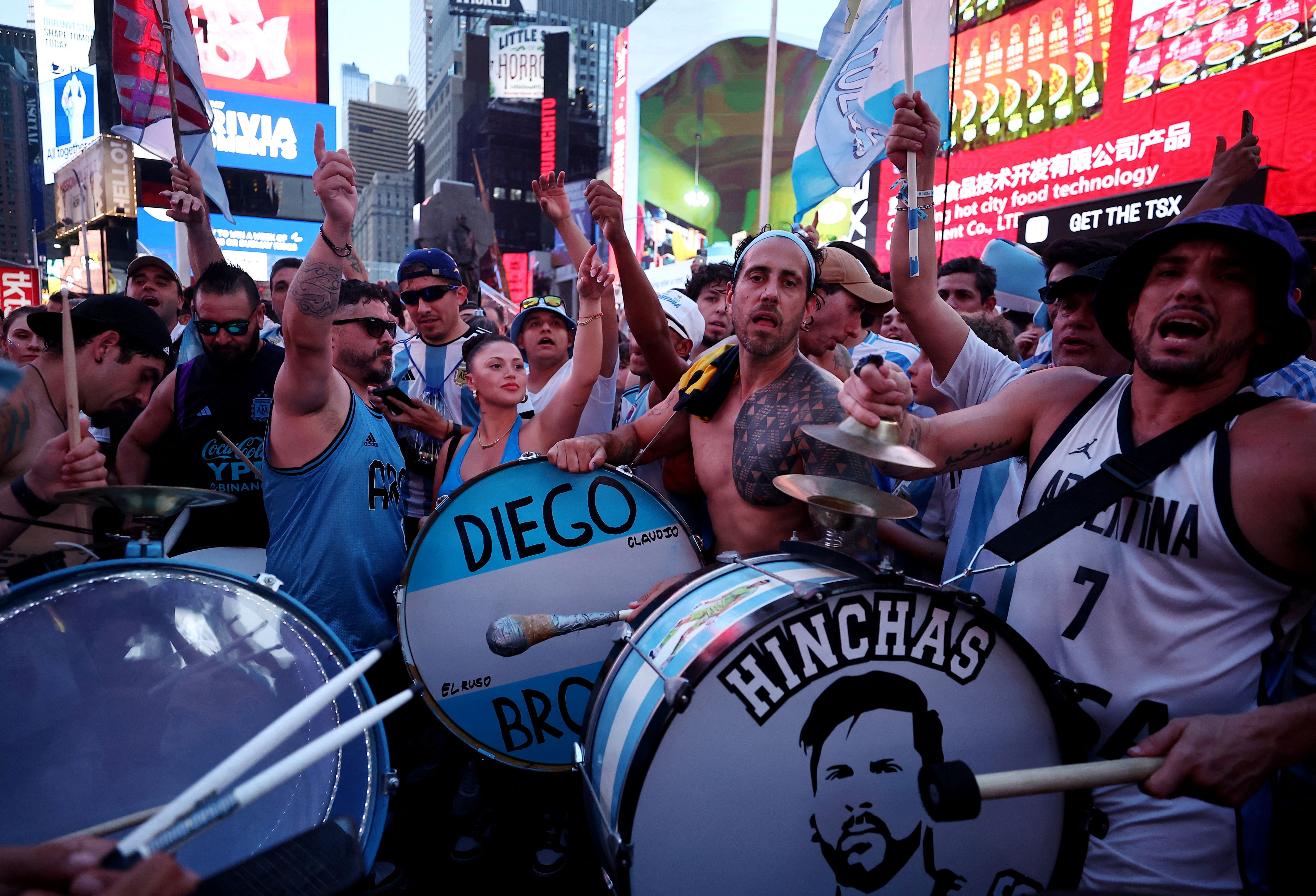 Argentina fans gather in Times Square ahead of their semi final Copa America soccer match against Canada on July 8, 2024. (Photo by Agustin Marcarian/Reuters)