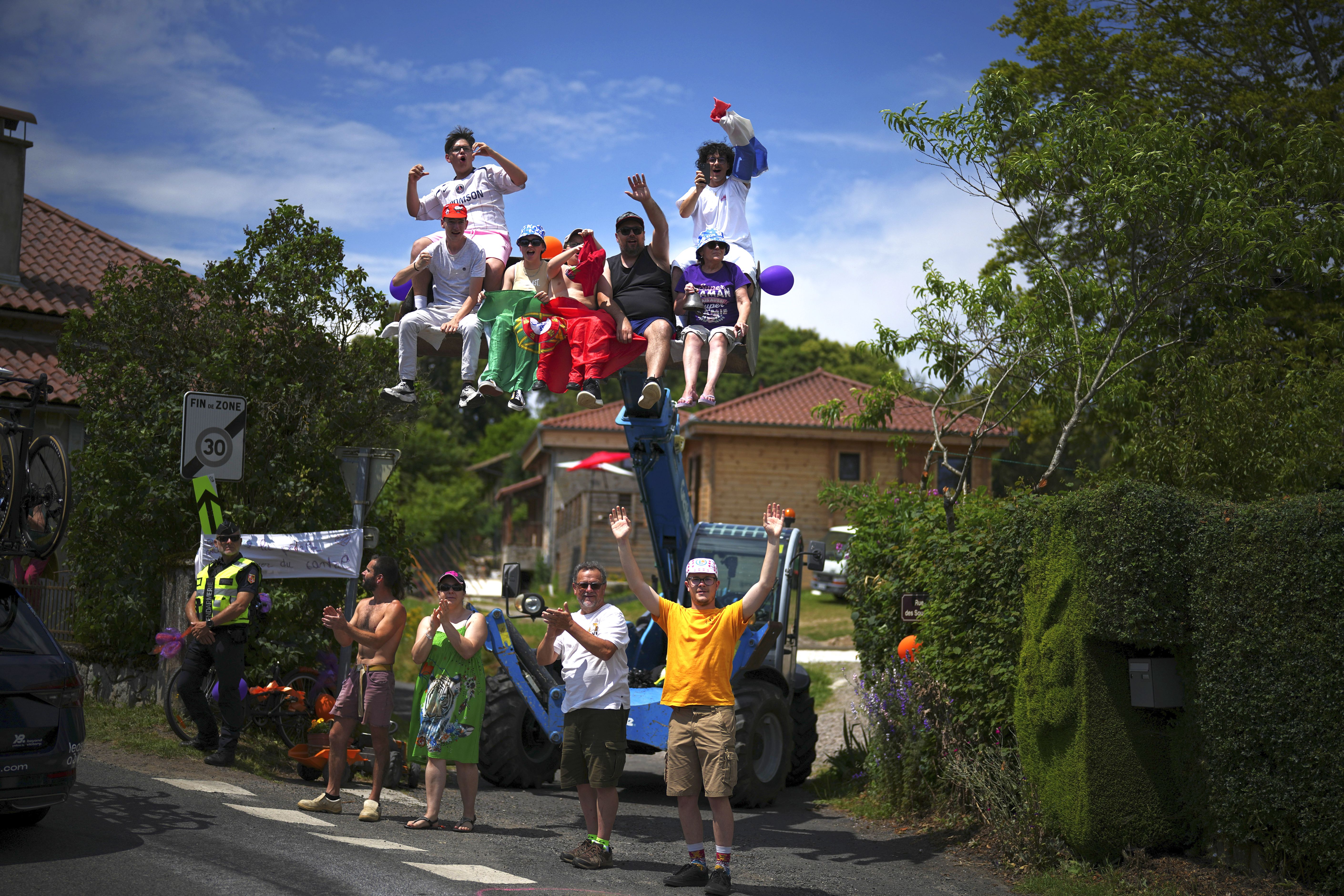 Spectators wait for the peloton to pass during the twelfth stage of the Tour de France cycling race over 203.6 kilometers (126.5 miles) with start in Aurillac and finish in Villeneuve-sur-Lot, France, Thursday, July 11, 2024. (Photo by Daniel Cole/AP Photo)