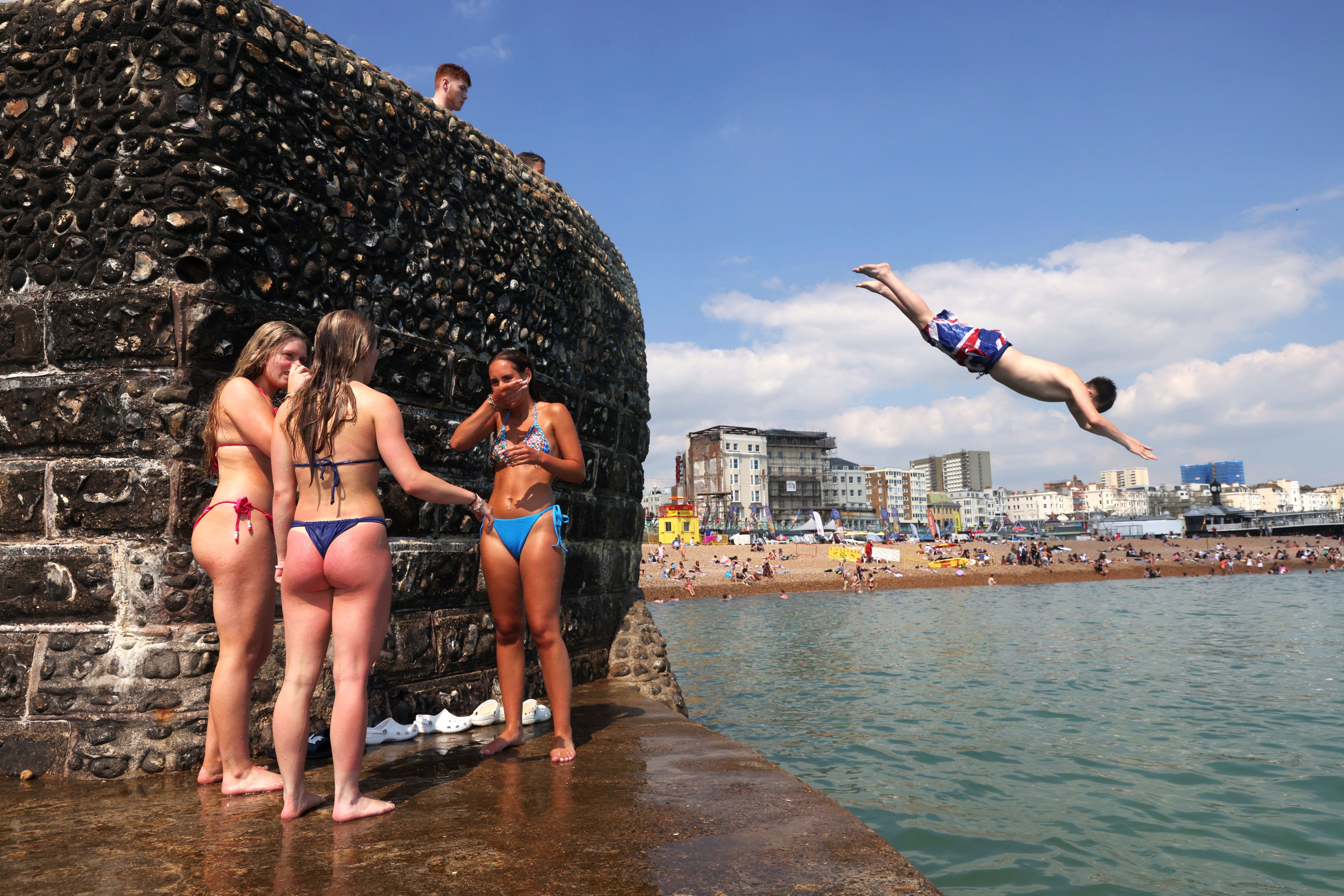 Brighton beach was the place to cool down as Britain basked in a long spell of warm weather on June 25, 2024. (Photo by Jack Hill/The Times)