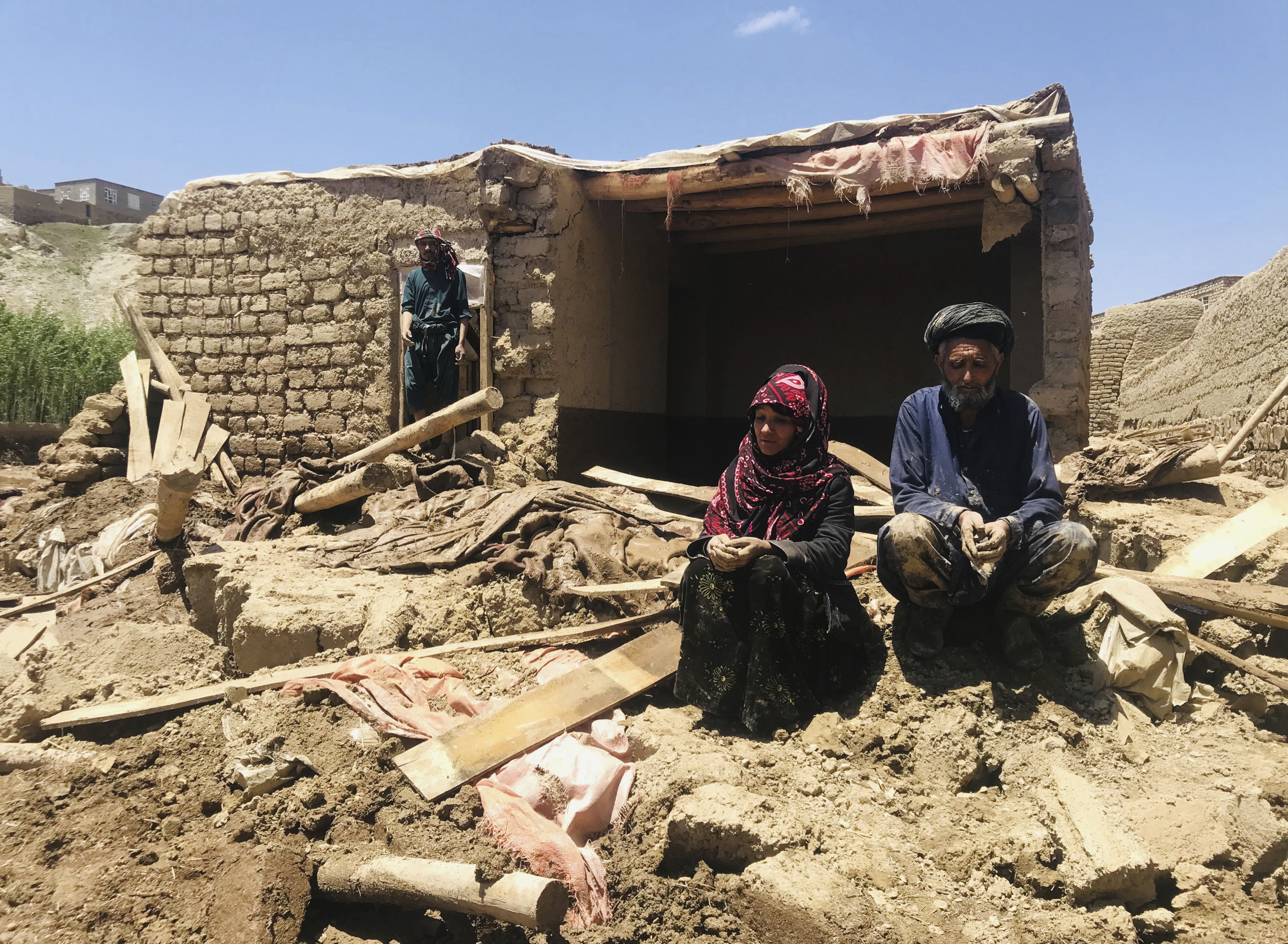 An Afghan couple sit near to their damaged home after heavy flooding in Ghor province in western Afghanistan Saturday, May 18, 2024. Flash floods from heavy seasonal rains in Ghor province in western Afghanistan killed dozens of people and dozens remain missing, a Taliban official said on Saturday, adding the death toll was based on preliminary reports and might rise. (Photo by Omid Haqjoo/AP Photo)