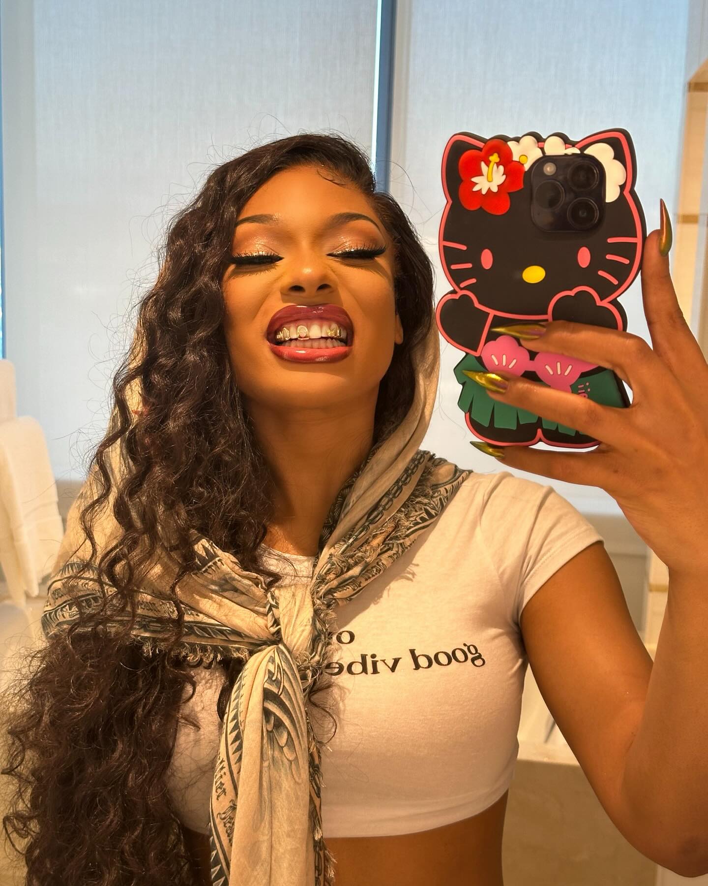 American rapper Megan Thee Stallion shows off her grills in a mirror selfie early July 2024. (Photo by theestallion/Instagram)