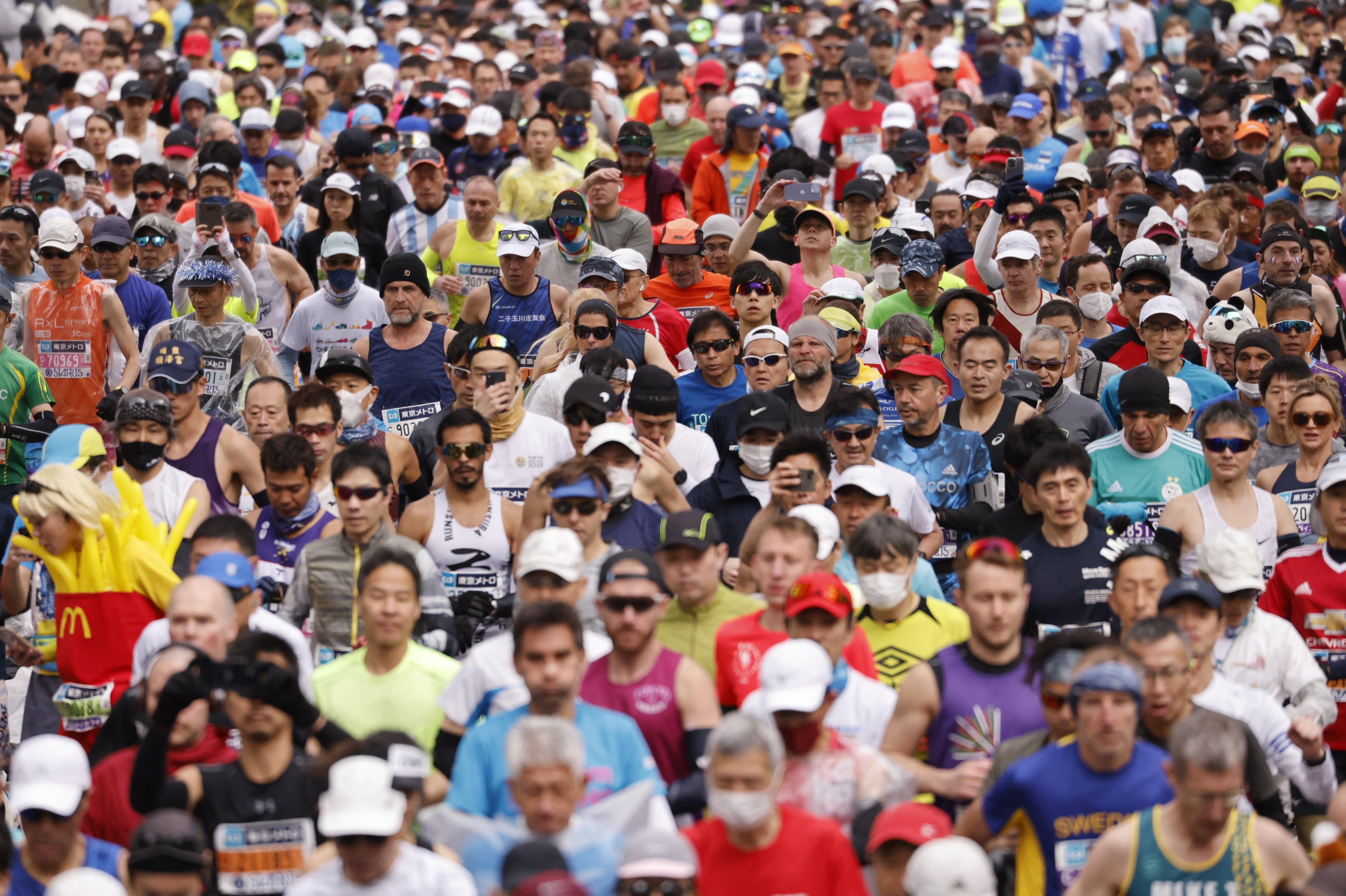 Runners take part in the Tokyo Marathon 2023 in Tokyo on March 5, 2023. (Photo by Issei Kato/Pool via AFP Photo)