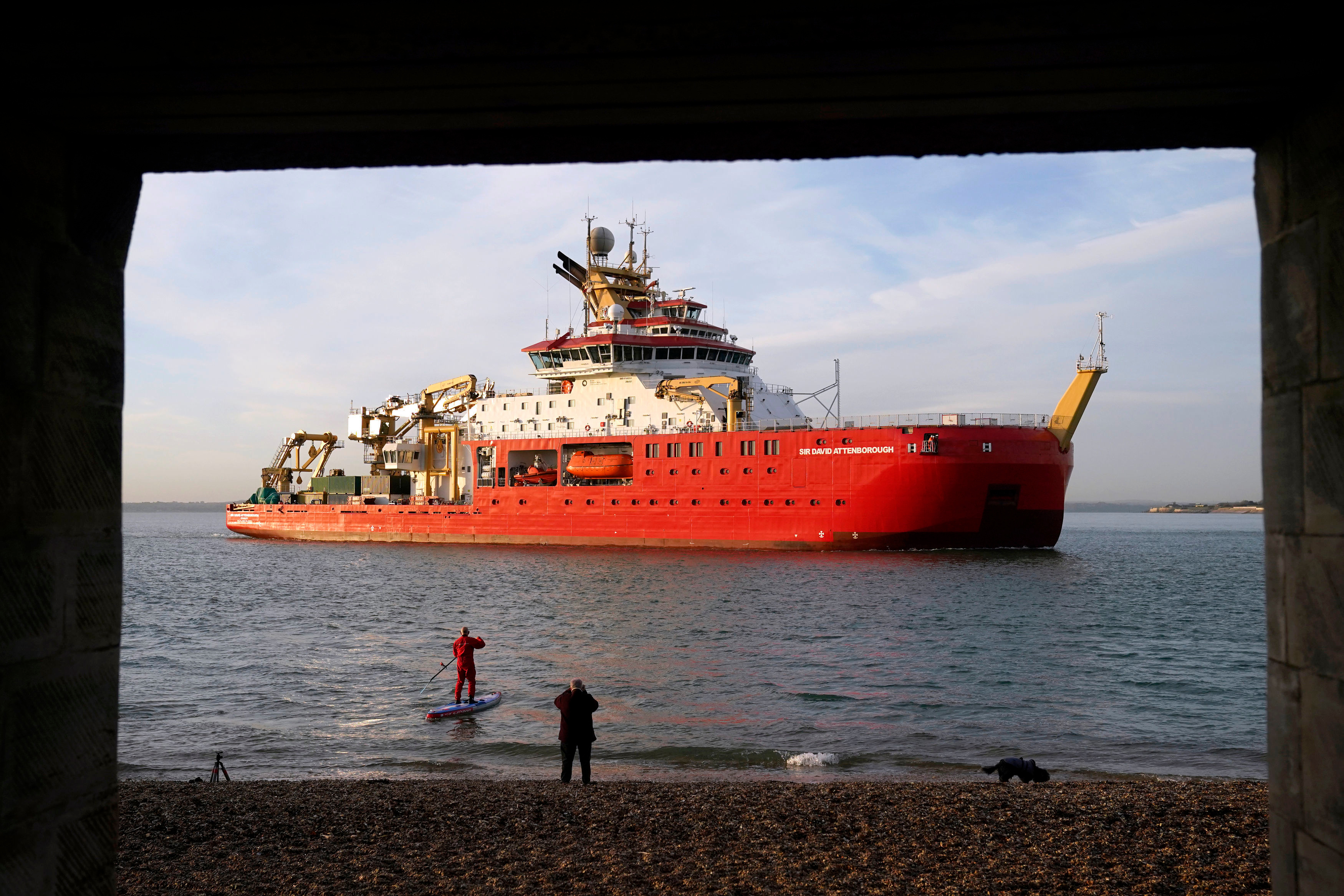 The RRS Sir David Attenborough, the UK's most advanced polar research ship, sails into Portsmouth Harbour, Hampshire on Wednesday, November 17, 2021. (Photo by Andrew Matthews/PA Images via Getty Images)