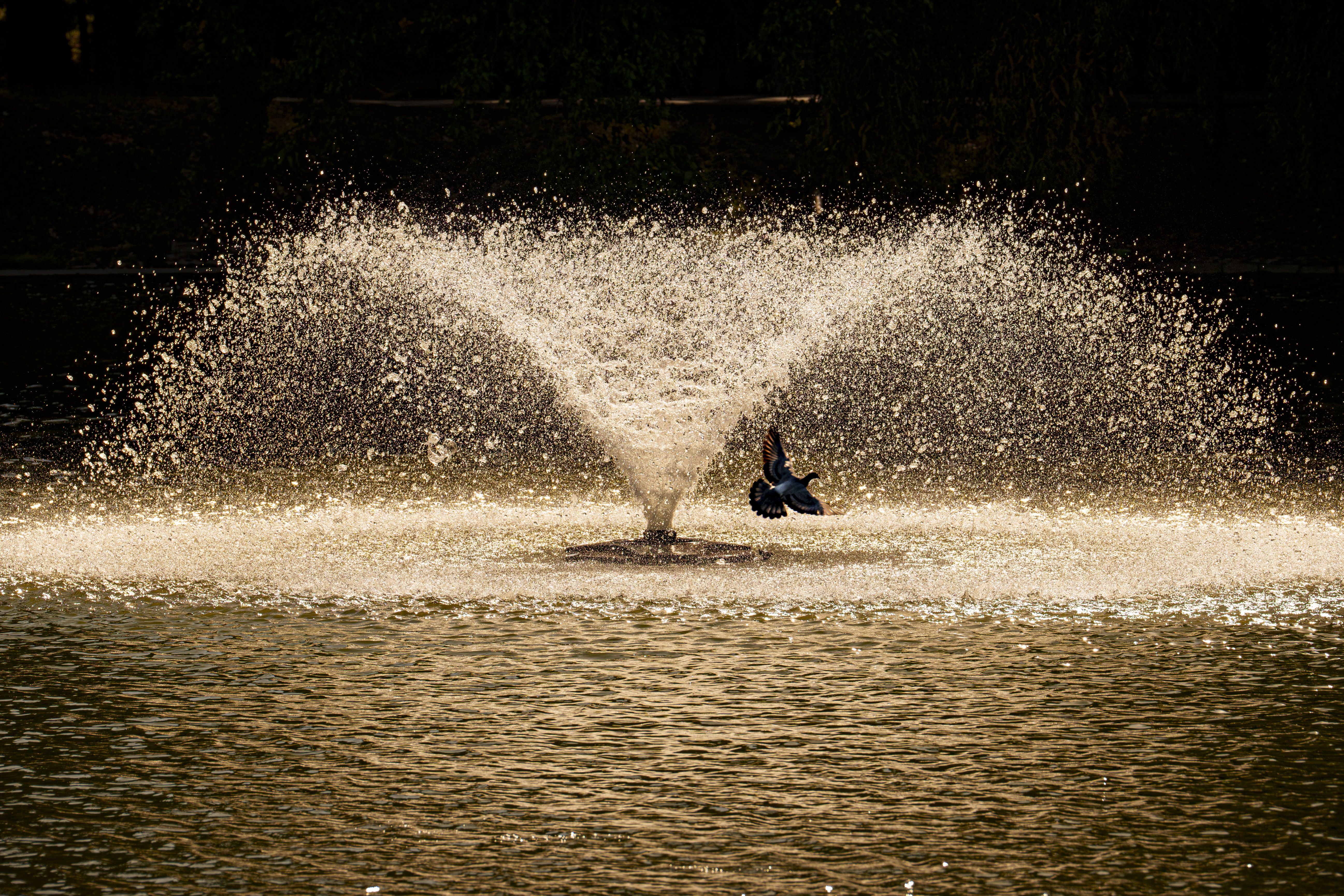 A pigeon flies by a fountain in Bucharest, Romania, Tuesday, July 9, 2024, as temperatures exceeded 39 degrees Celsius (102.2 Fahrenheit). The national weather forecaster issued a orange warning for the coming week, as temperatures are expected to reach 40 degrees Celsius (104 Fahrenheit). (Photo by Vadim Ghirda/AP Photo)