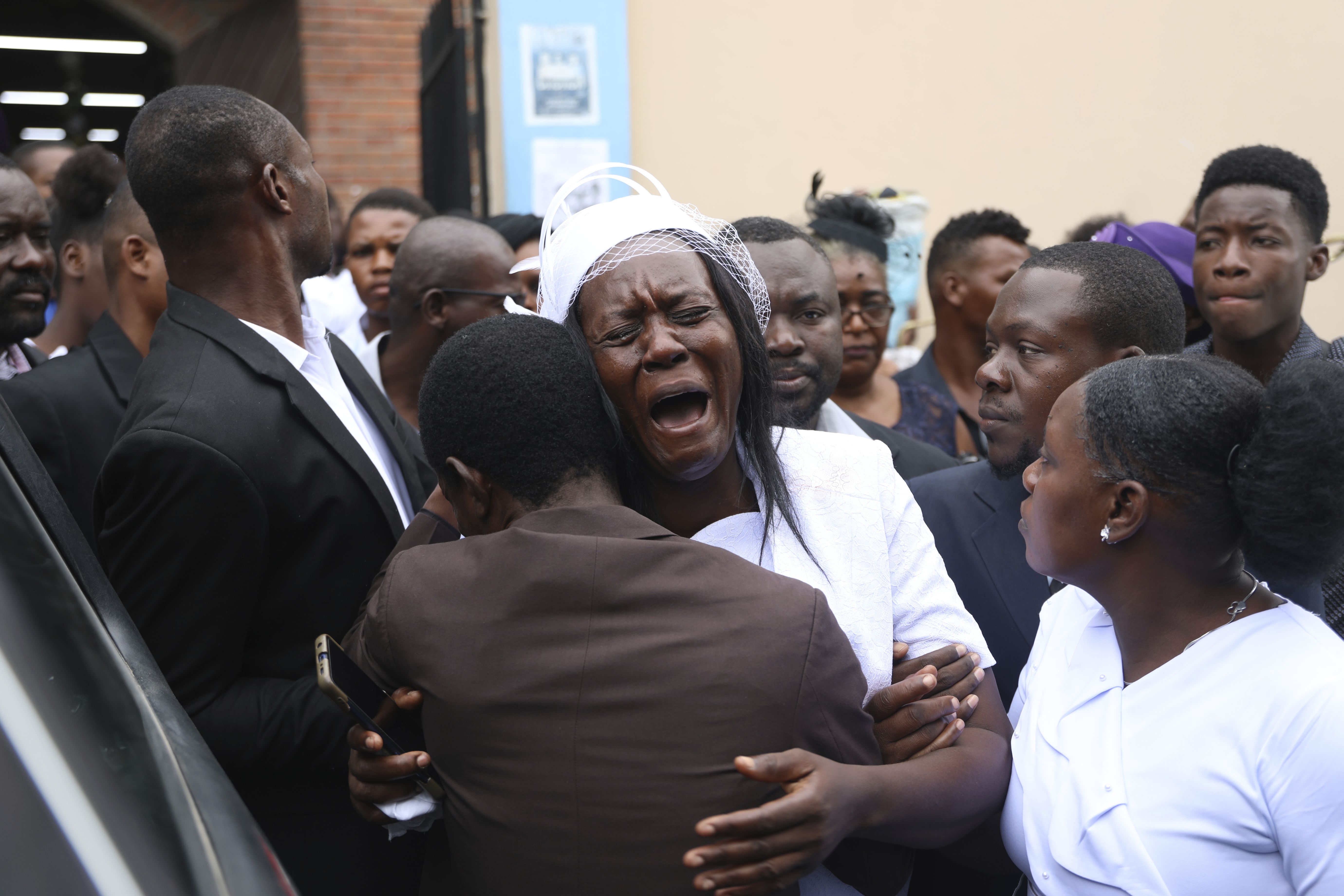 Eunide Majeur Montis, the wife of slain mission director Judes Montis, cries after attending his funeral service in Port-au-Prince, Haiti, Tuesday, May 28, 2024. The service also honored the lives of Davy and Natalie Lloyd, a married couple in their early 20s who were with Montis when gunmen ambushed them on Thursday night, May 23, as they left a youth group activity held at a local church. (Photo by Odelyn Joseph/AP Photo)