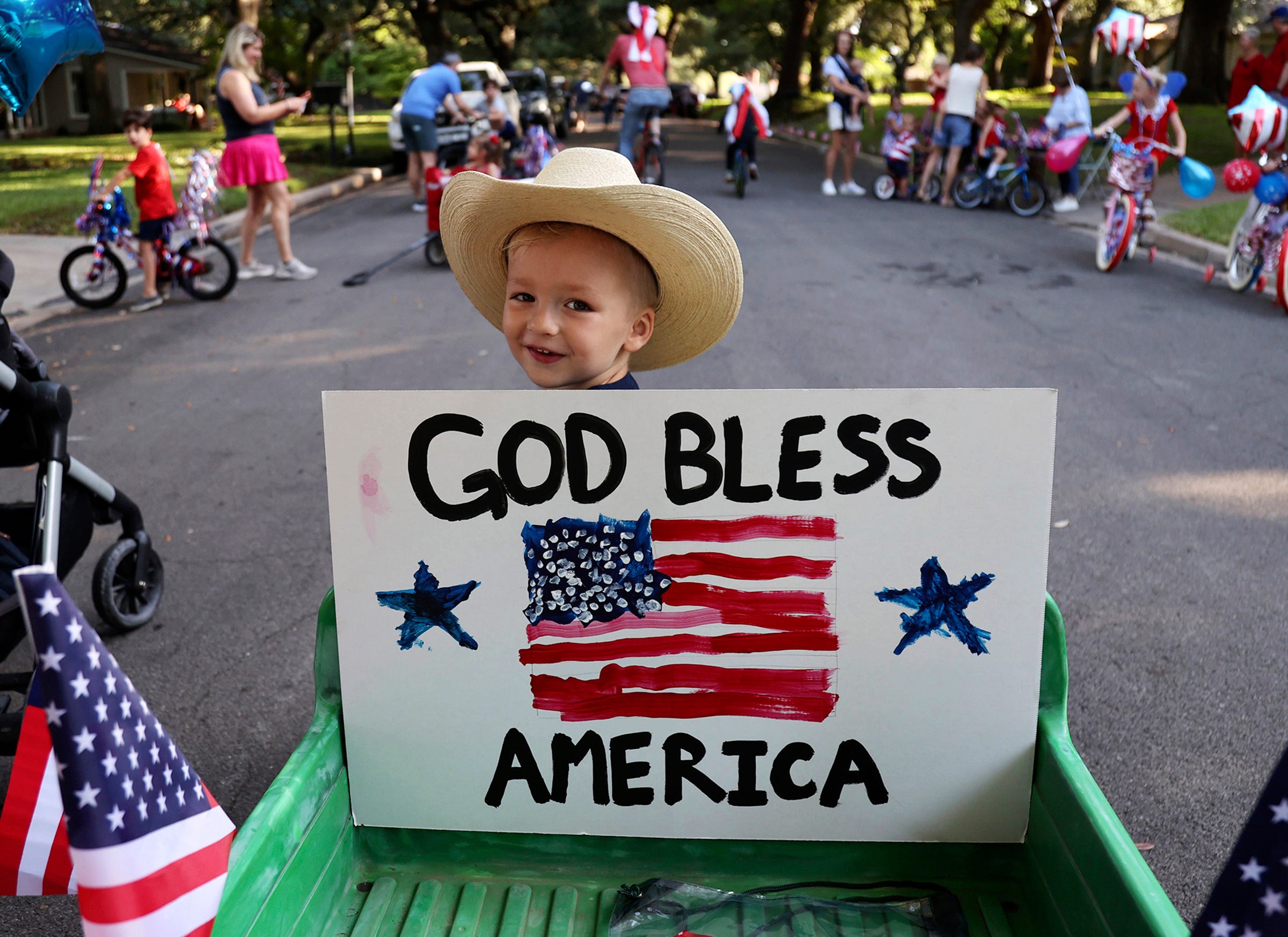 Niels Jacobsen, 3, waits for the Old Oaks neighborhood parade to begin on the Fourth of July, in Waco, Texas, on Thursday, July 4, 2024. The parade is over thirty years old. (Photo by Jerry Larson/AP Photo)
