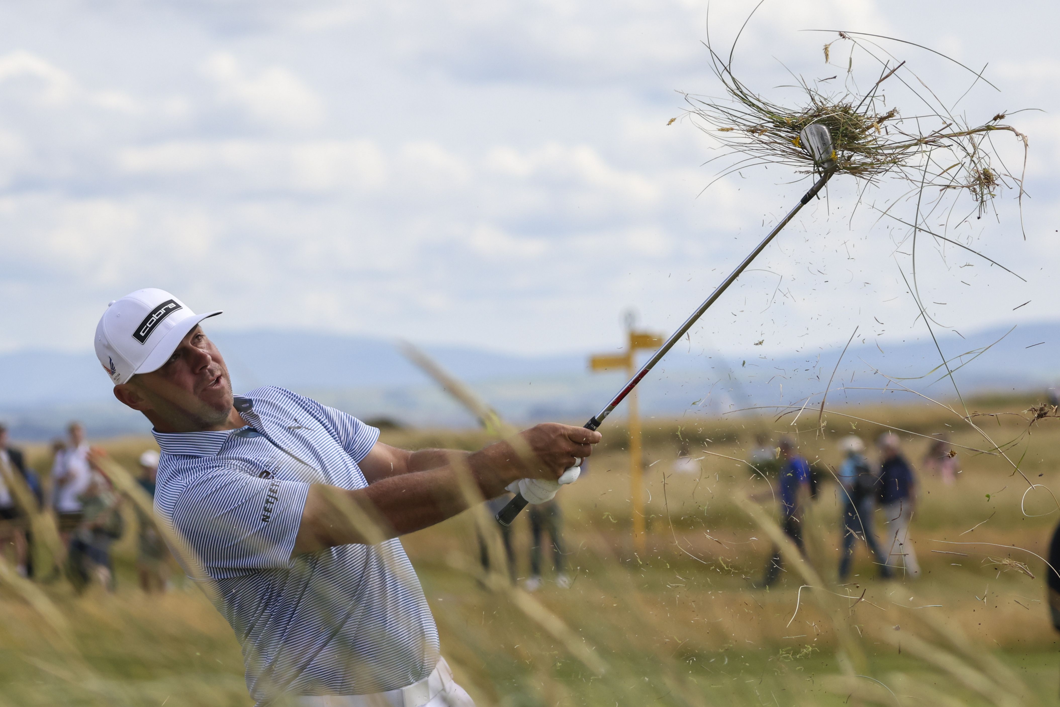 Gary Woodland of the United States plays from the rough on the 16th during a practice round ahead of the British Open Golf Championships at Royal Troon golf club in Troon, Scotland, Wednesday, July 17, 2024. (Photo by Peter Morrison/AP Photo)